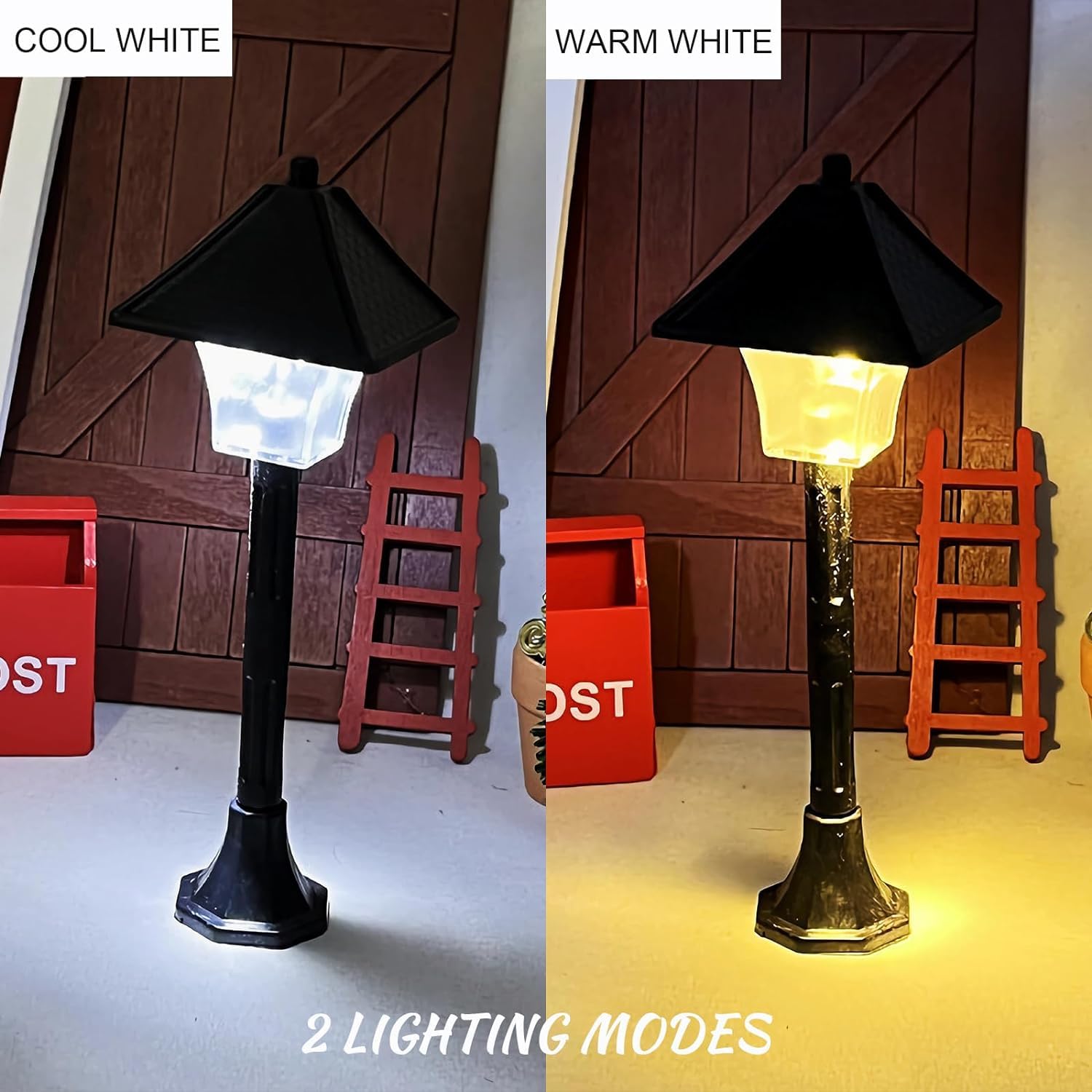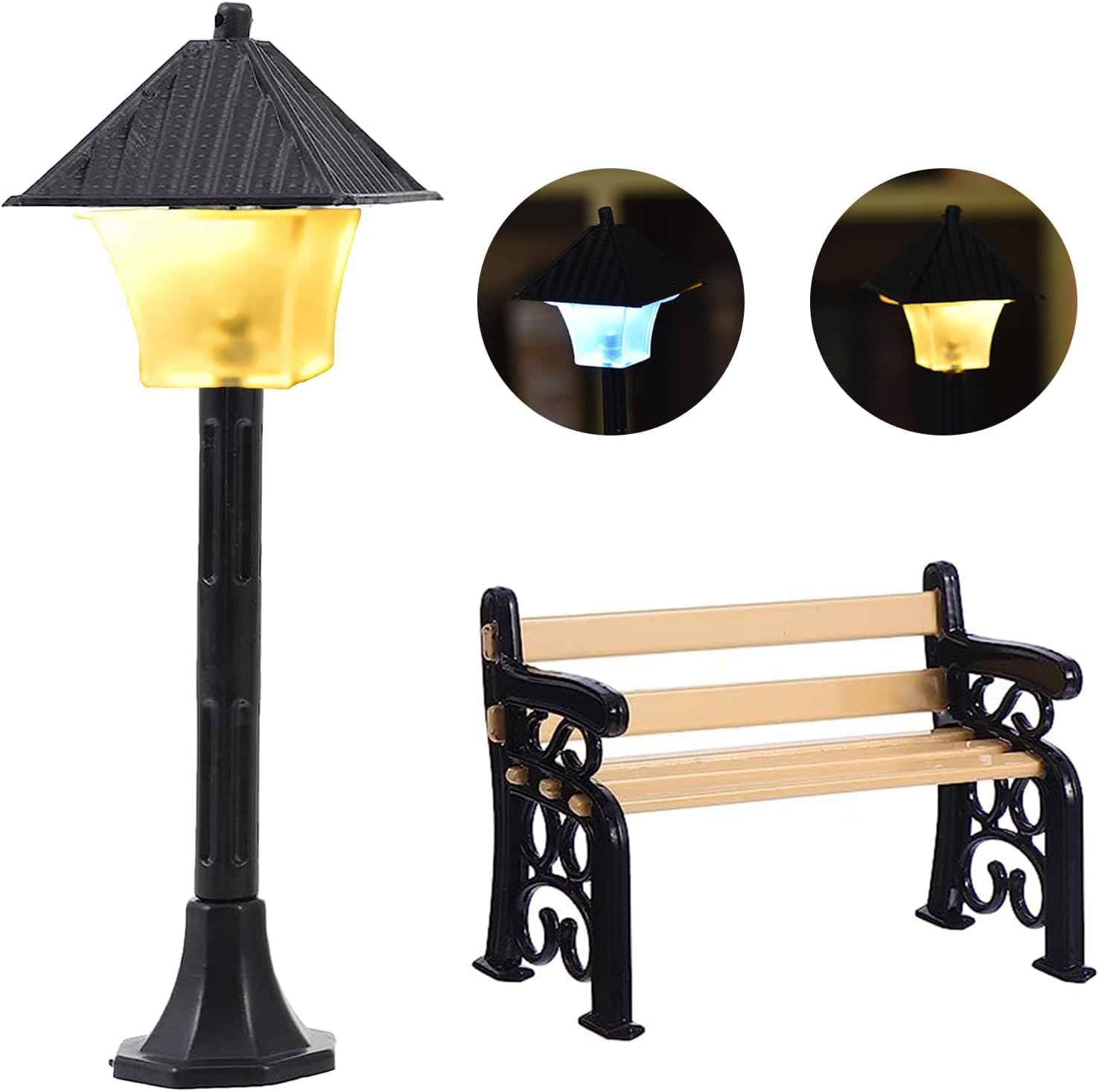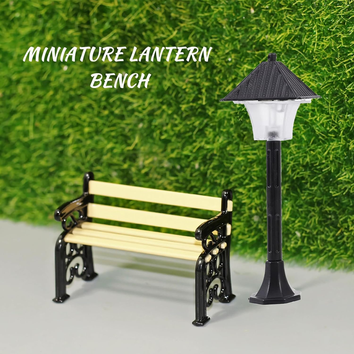 - [Glänzende Straßenlaterne] sie erhalten eine Mini-Bank und eine miniatur laterne. Im Gegensatz zu anderen Dekorationen leuchtet unsere miniatur laterne auf,Eine Knopfbatterie kann darin installiert werden. Gleichzeitig können Kopf und Stange der Straßenlaterne entfernt werden, was sehr bequem und einfach zu tragen ist.