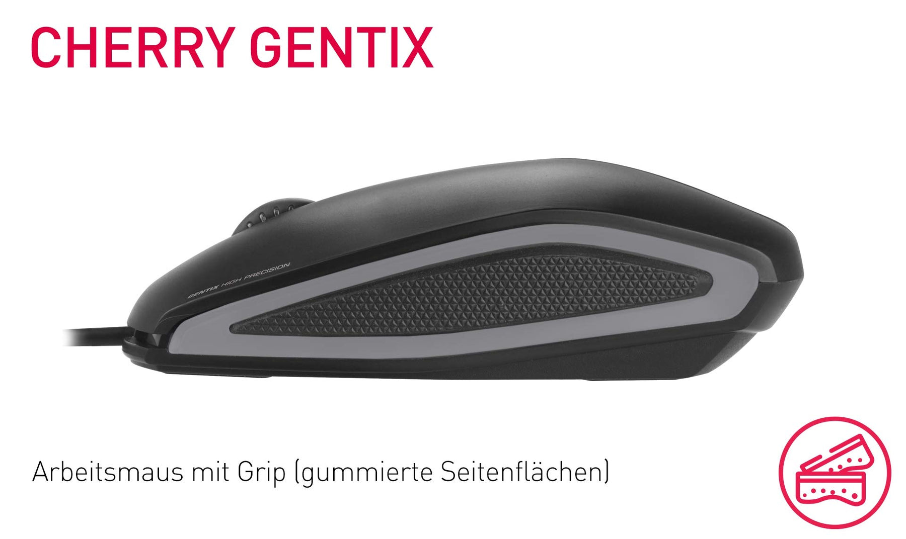 Hochwertige deutsche Ingenieurskunst trifft auf herausragendes Design - das ist CHERRY. Bereits 1953 begann die Fertigung der ersten Mikroschalter im Keller eines Restaurants in Illinois. 20 Jahre später wurden die ersten Keyboards gebaut - somit ist CHERRY der älteste Hersteller von Computertastaturen. 1983 startete die Produktion der MX-Switches, die mittlerweile milliardenfach in Millionen Tastaturen rund um den Globus zum Einsatz kommen. Jahrzehntelange Erfahrung, Leidenschaft und Tradition machen die Marke mit der Kirsche zu dem, wofür sie heute steht: Qualitätsprodukte, die in Deutschland entworfen werden und sich an all diejenigen richten, die einen hohen Anspruch an Leistung, Design, Lebensdauer und Funktionalität ihrer Eingabegeräte haben. Die CHERRY GENTIX CORDED ist die kabelgebundene Profi-Maus für jeden Schreibtisch. Sie bietet ein solides 3-Tasten-Design mit 1,8 Meter langem Kabel für mehr Flexibilität, rutschsichere Seiten aus Voll-Gummi für festen Grip und dank des USB-Anschlusses lässt sie sich ganz einfach an Notebook, PC und Mac anstecken. Ihr symmetrisches Design wird nach hinten schmaler und sorgt damit für eine angenehme Ergonomie für Rechts- und Linkshänder, für große und kleine Hände. Der Komfort wird durch die hochwertige Verarbeitung der robusten Materialien noch weiter erhöht und durch das relativ leise Klickgeräusch eignet sie sich auch in offenen Arbeitsbereichen.