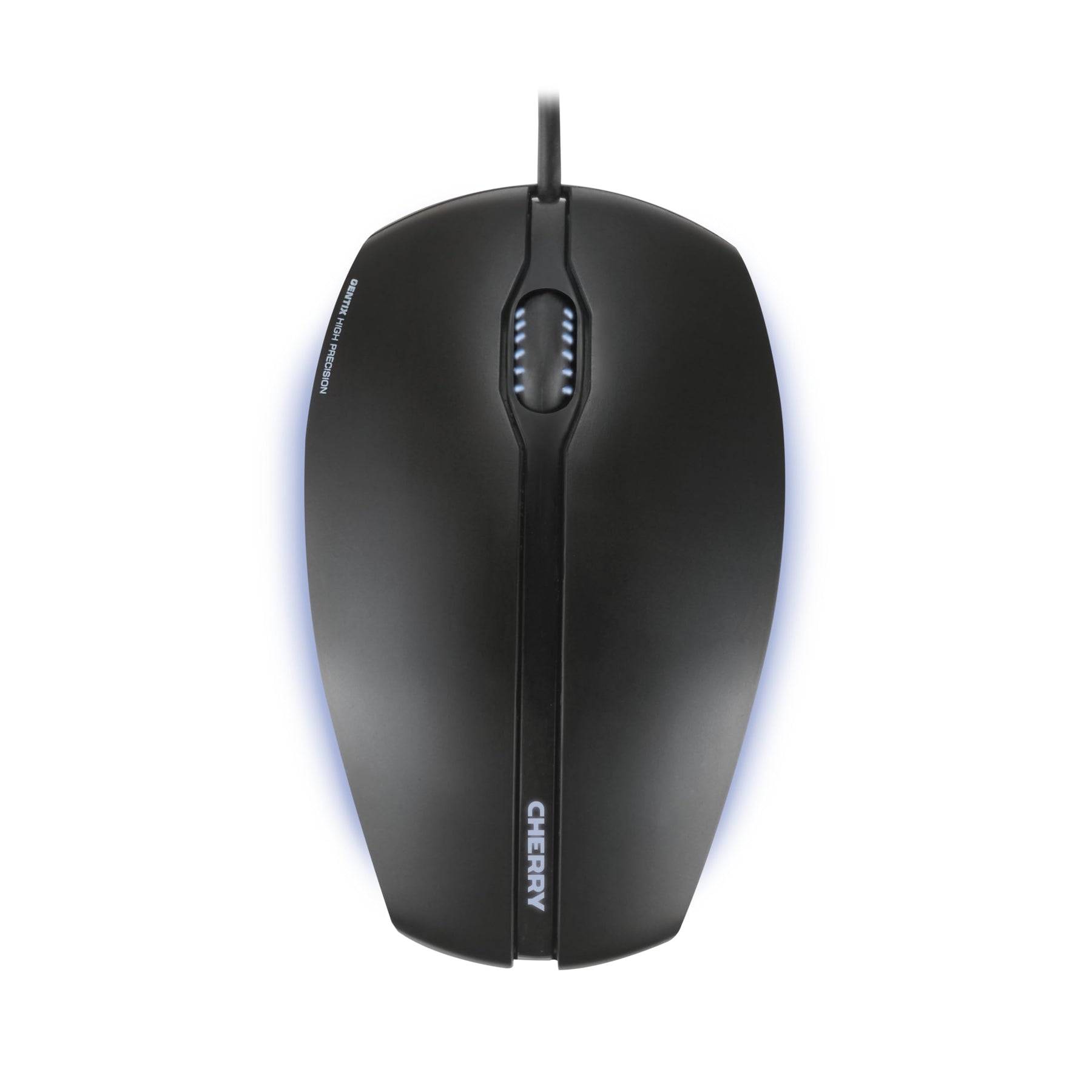 CHERRY GENTIX ILLUMINATED, Kabelgebundene Maus, Blau Beleuchtete Seitenteile & Scrollrad, 3 Tasten, Optischer Sensor (1.000 dpi), Symmetrisches Design, Schwarz