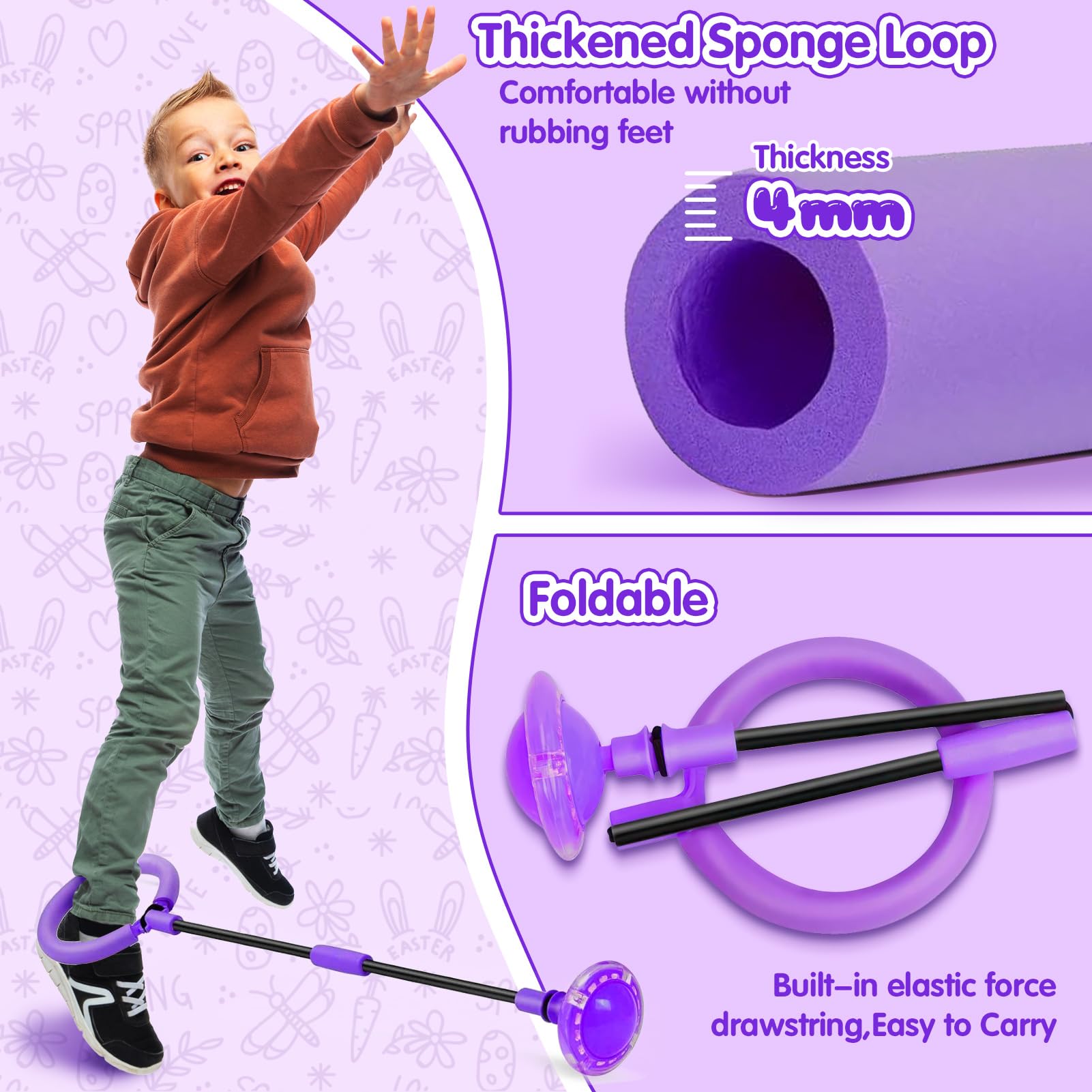 chimoo Kinder Blinkender Springring Fußkreisel,Faltbarer Ankle Skip Ball Sport Sprungball Mit Lichtrad Lila Blinkender Sprungball Mädchen Im Alter Von 6, 7, 8, 9 Und 10 Jahren