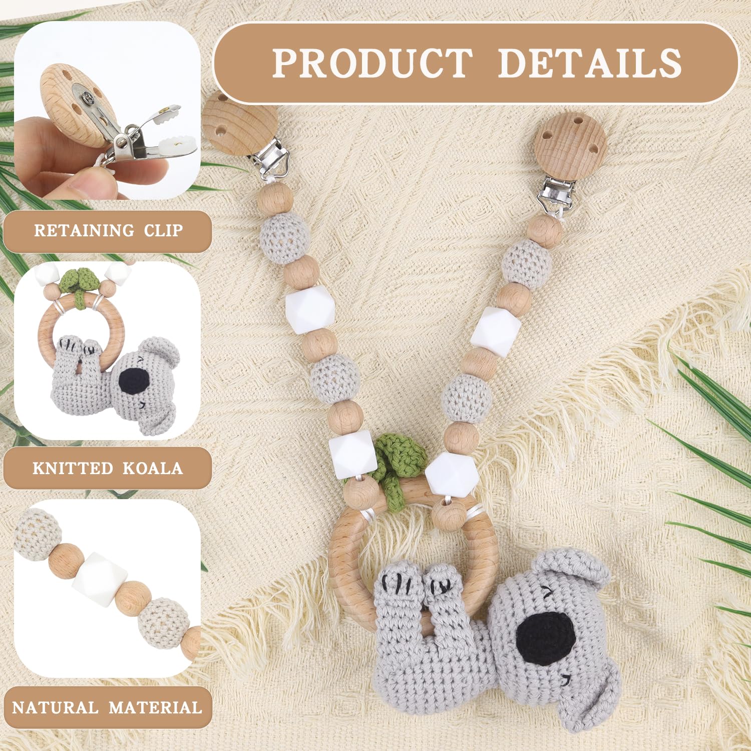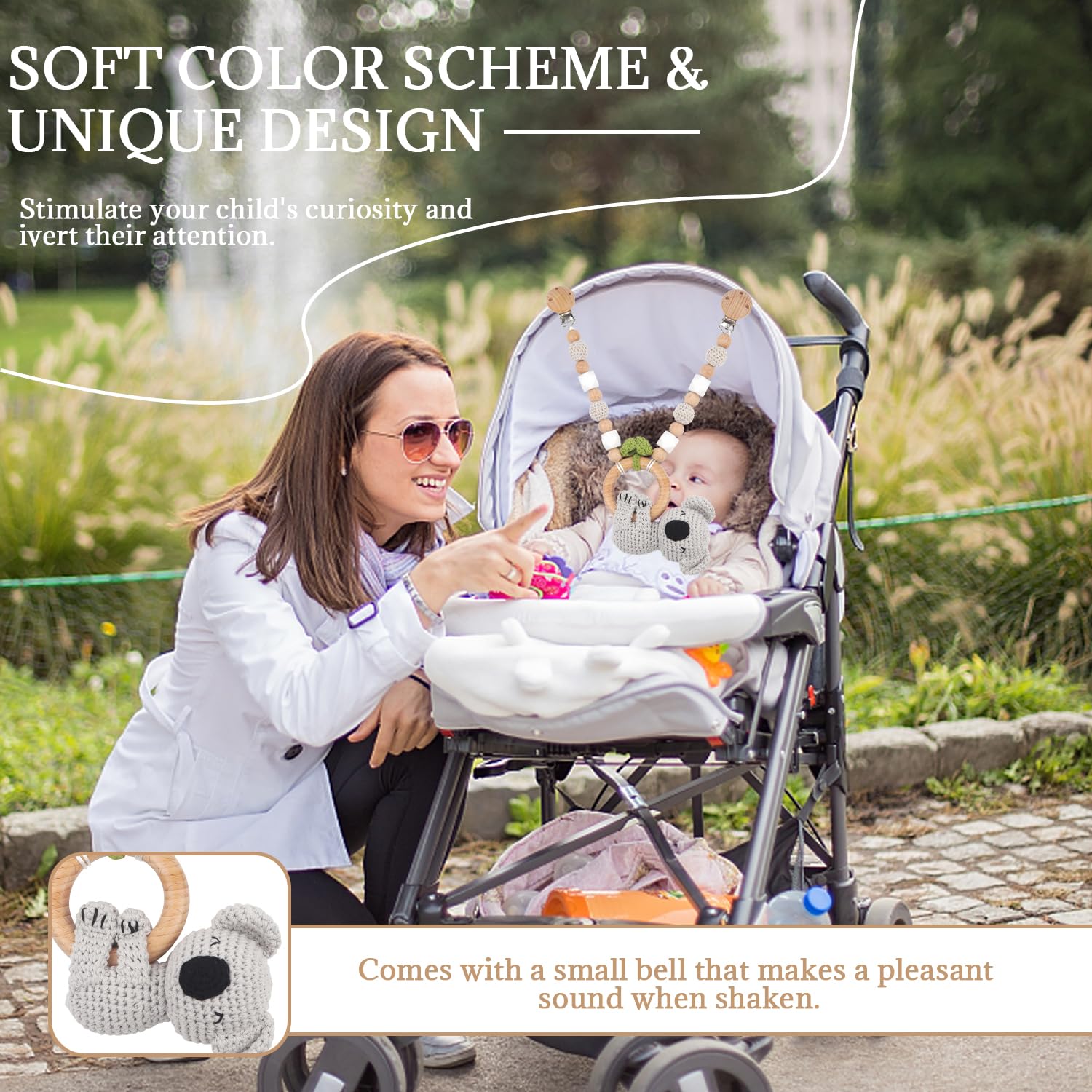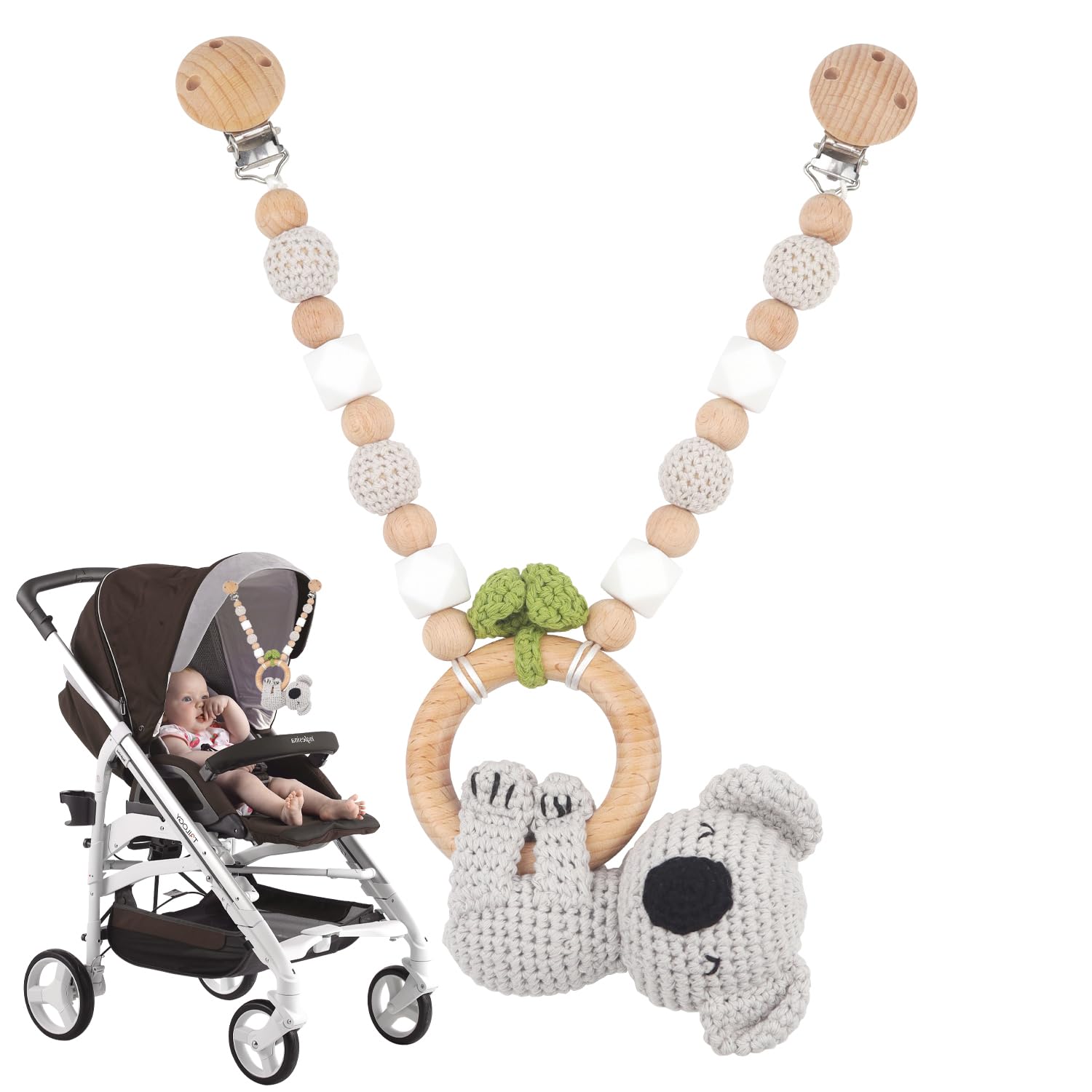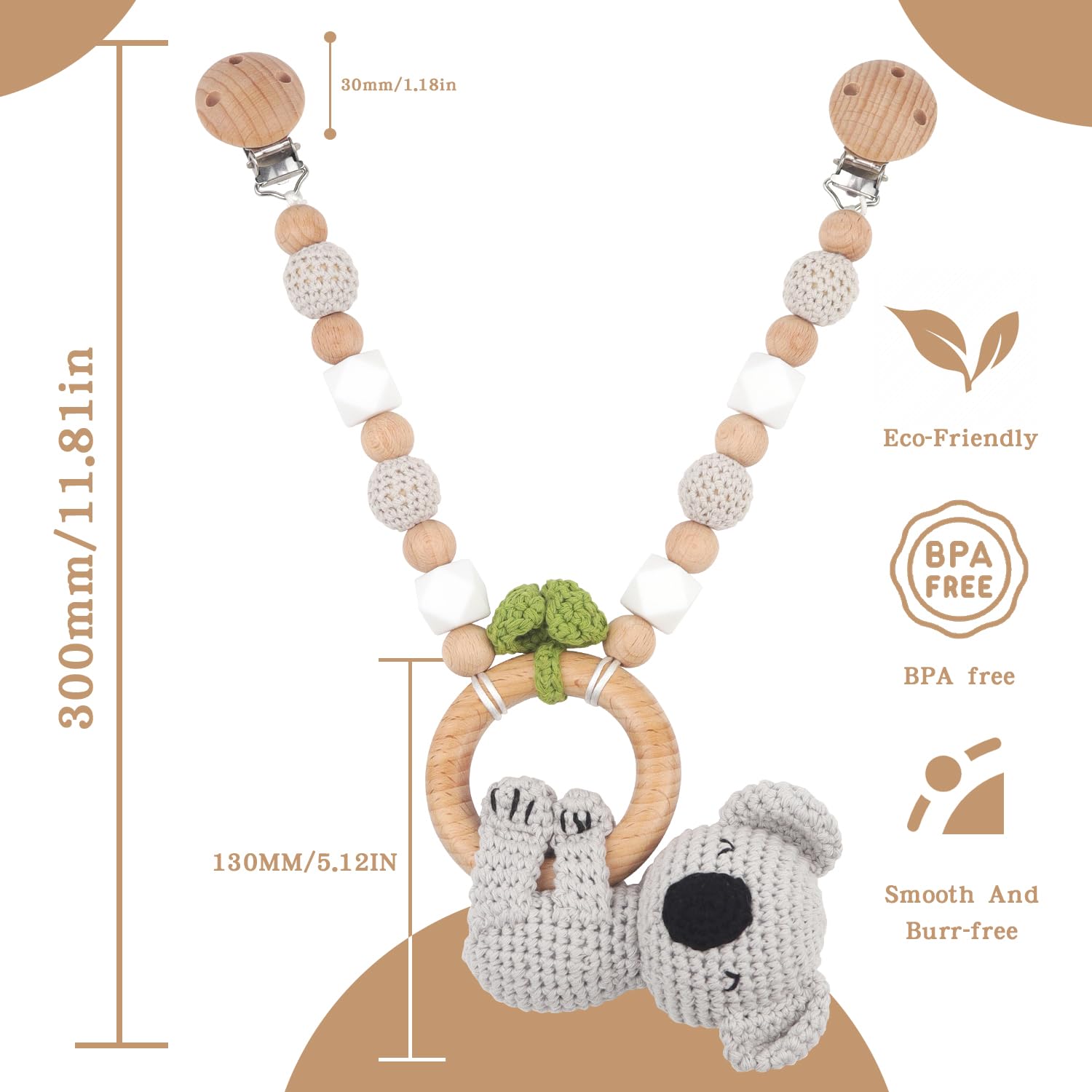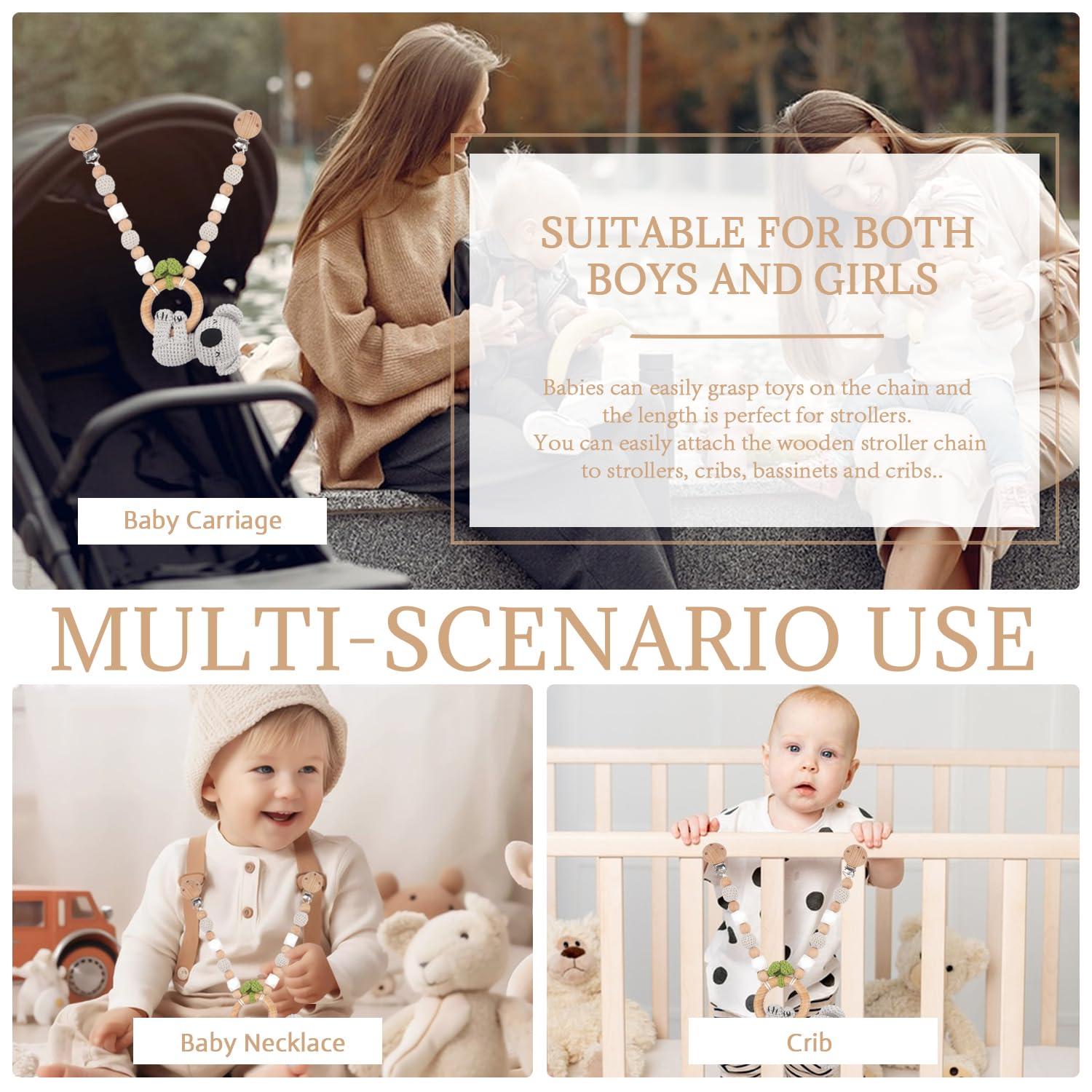 ⭕Kinderwagenkette Holz Baby, einfach zu installieren oder zu entfernen, am Kinderwagen befestigt und kann verwendet werden, einfach zu bedienen.