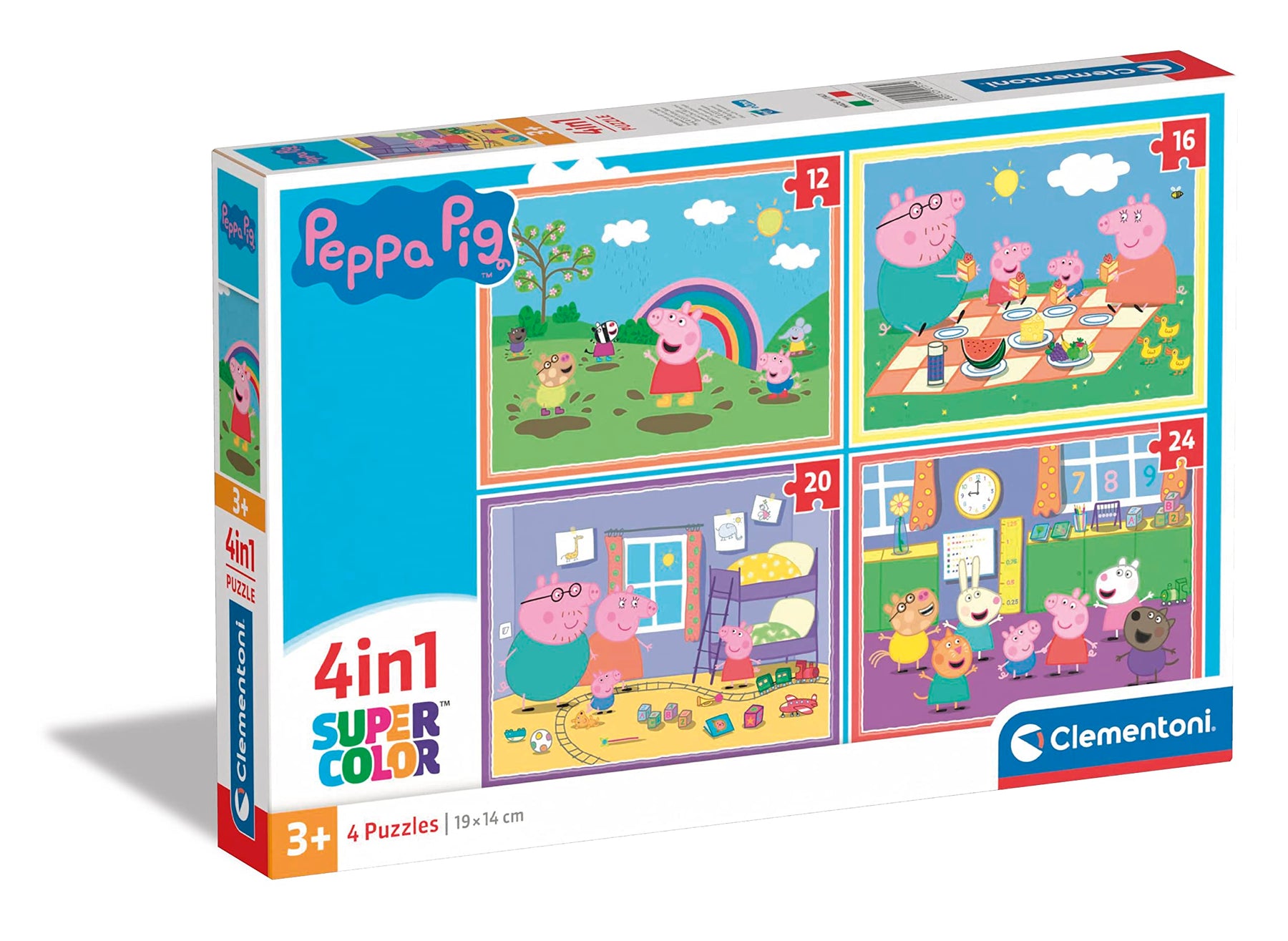 Clementoni - 21516 - Supercolor Puzzle 4 In 1 - Peppa Pig - Puzzle 12,16,20,24 Teile Ab 3 Jahren, Buntes Kinderpuzzle Mit Besonderer Leuchtkraft & Farbintensität, Geschicklichkeitsspiel Für Kinder