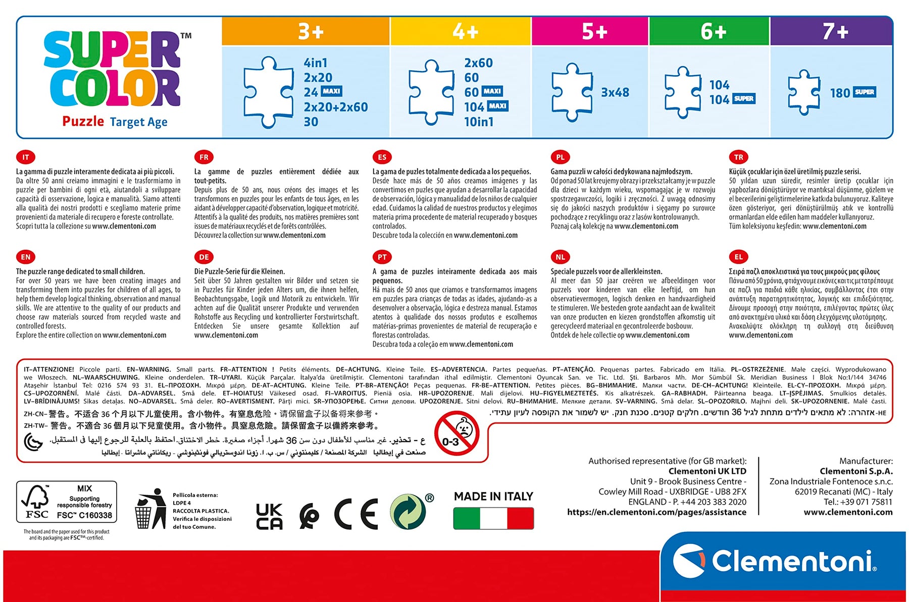 Puzzle für Kinder 12,16,20,24 Teile Eine große Auswahl an Puzzles, die speziell für Kinder entwickelt wurden, um deren Beobachtungsgabe sowie ihre logischen Fähigkeiten und die Geschicklichkeit zu verbessern. Faszinierende Bilder der beliebtesten Kinderfiguren mit lebendigen, ansprechenden Farben für stundenlangen Spaß mit Freunden und Familie. Clementoni achtet seit jeher auf die Umwelt, benutzt weitgehend recycelte Materialien und vermeidet den Einsatz umweltverschmutzender Bestandteile. Made in Italy. Gehen Sie zum Hilfsbereich von Clementoni, um den Service „verlorene Teile“ zu nutzen