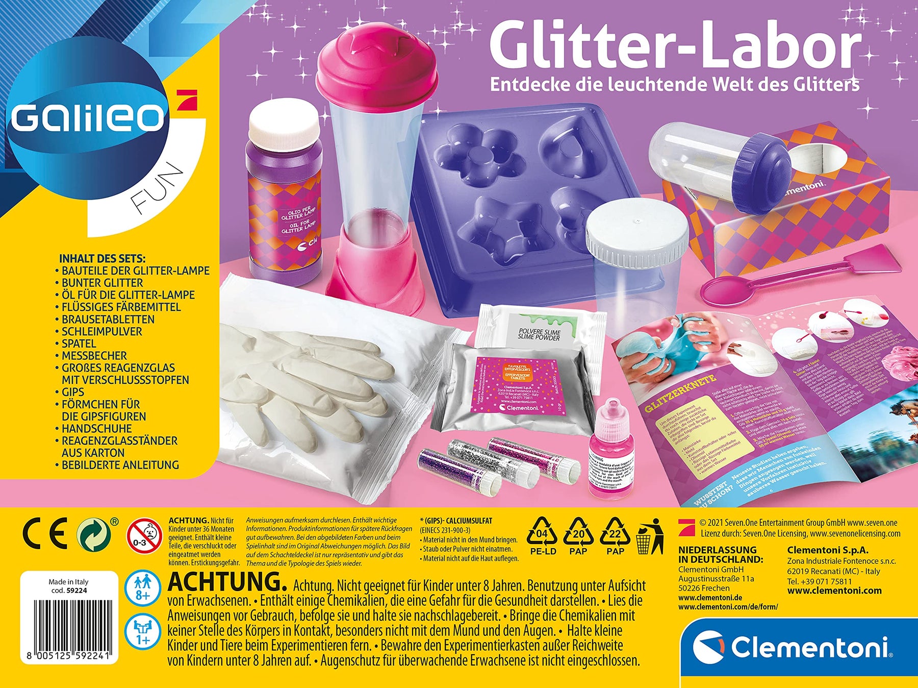 • Lieferumfang: 1 x Galileo Fun Glitter-Labor, Experimentierkasten mit schimmernden Kreationen für Kinder ab 8 Jahren von Clementoni