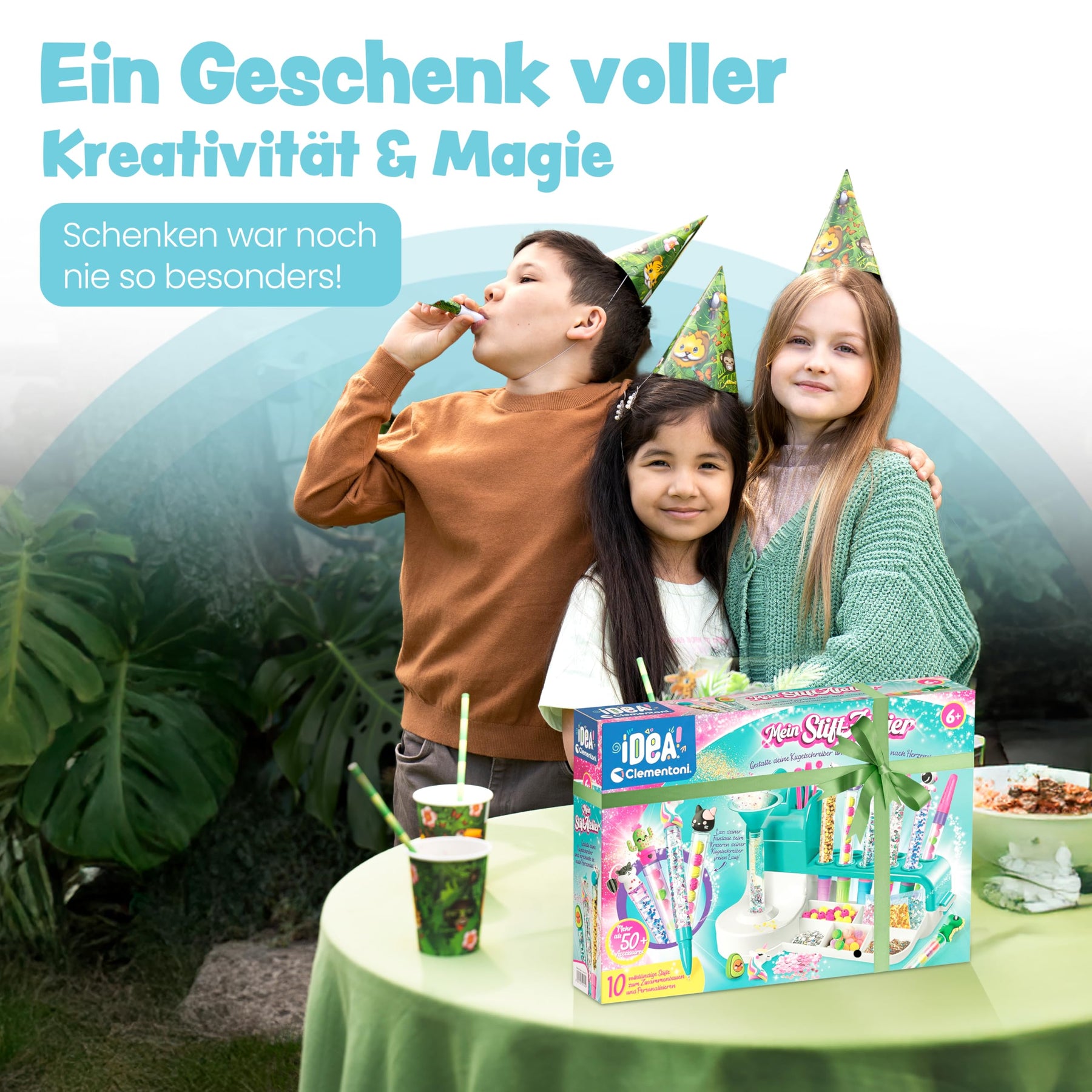 • Zauberhafte Stiftwerkstatt: Hier wird Magie lebendig! Das Idea Clementoni Stift-Atelier ermöglicht es Kindern ab 6 Jahren, ihre eigenen Stifte zu kreieren und mit ihren Freunden zu teilen