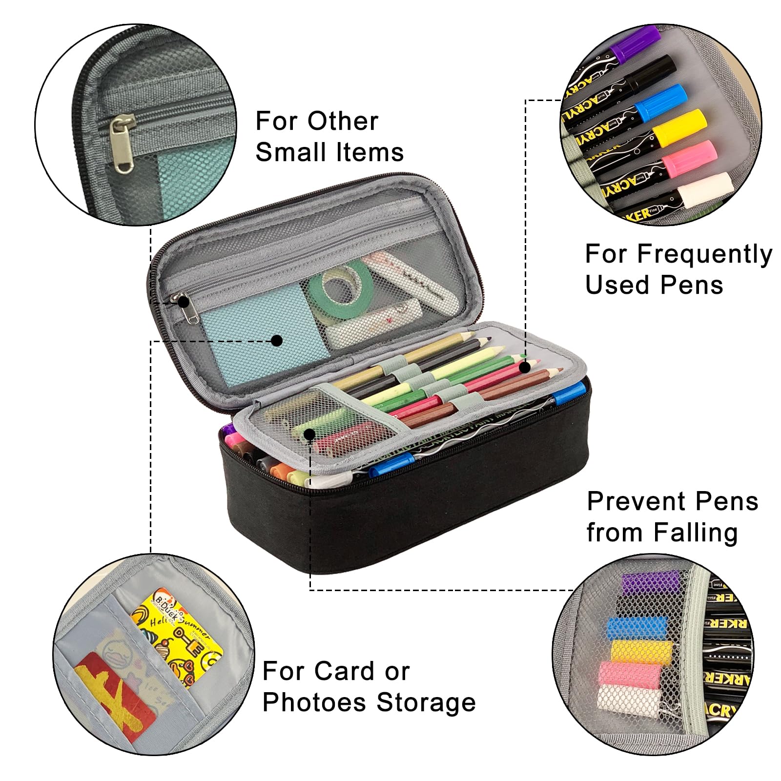 CNMTCCO Federmäppchen 5 Fächer, großer Vorrat federmäppchen große Größe mäppchen teenagerfeder mäppchen Unisex (Schwarz)