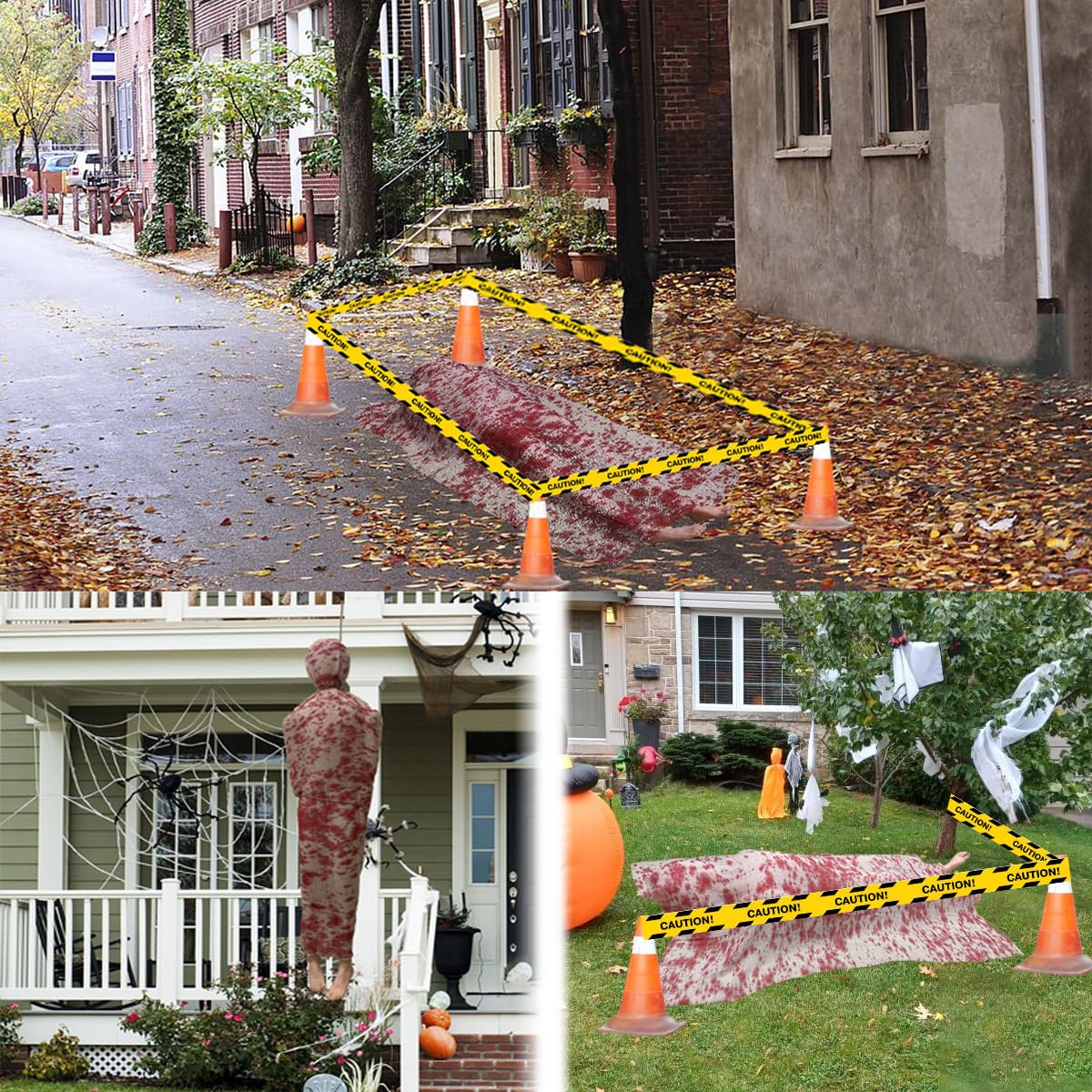 - 【Halloween Deko Leichensack Requisiten 】Die Halloween-Leiche besteht aus hochwertigem, dickem Kunststoff.langlebig.Das Bluttuch besteht aus hochwertiger Gaze und ist mit realistischen Blutflecken besprüht, wodurch es sicher in der Anwendung ist,Das Band besteht aus aluminisiertem Film mit guter reflektierender Wirkung, Es kann eine erschreckende Atmosphäre schaffen und mehr Überraschungen für die Gäste bringen
