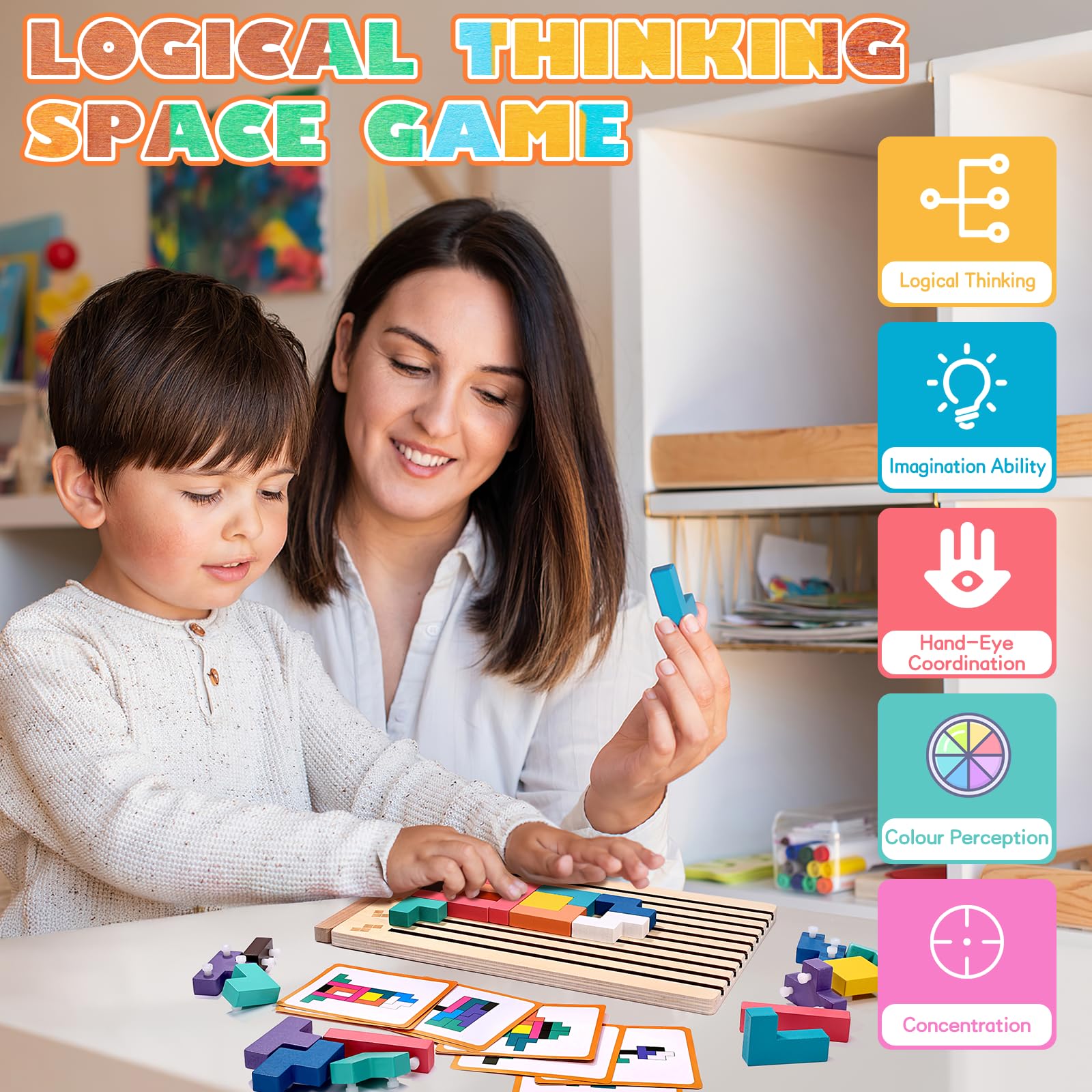 ✅ Kognitive Entwicklung: Kinder lernen räumliches Denken und Problemlösung durch das Nachbauen der Tetris-Muster auf den Karten.