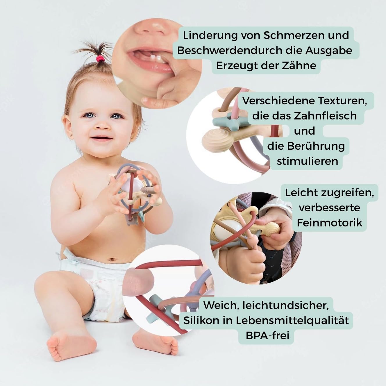- SENSORISCHE ENTWICKLUNG – Die vielfältigen Texturen, Details und kugelförmigen Ringe regen die Berührung und orale Erkundung der Kleinen an. Fördert ihre Entwicklung und Hand-Auge-Koordination