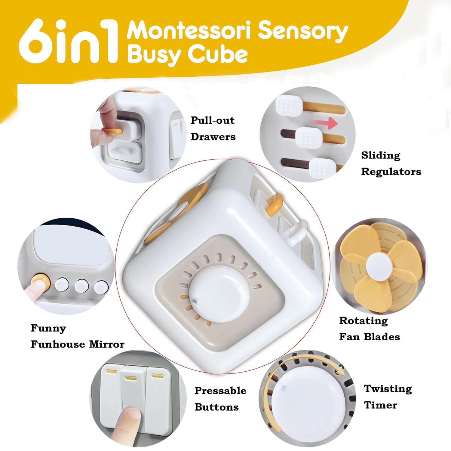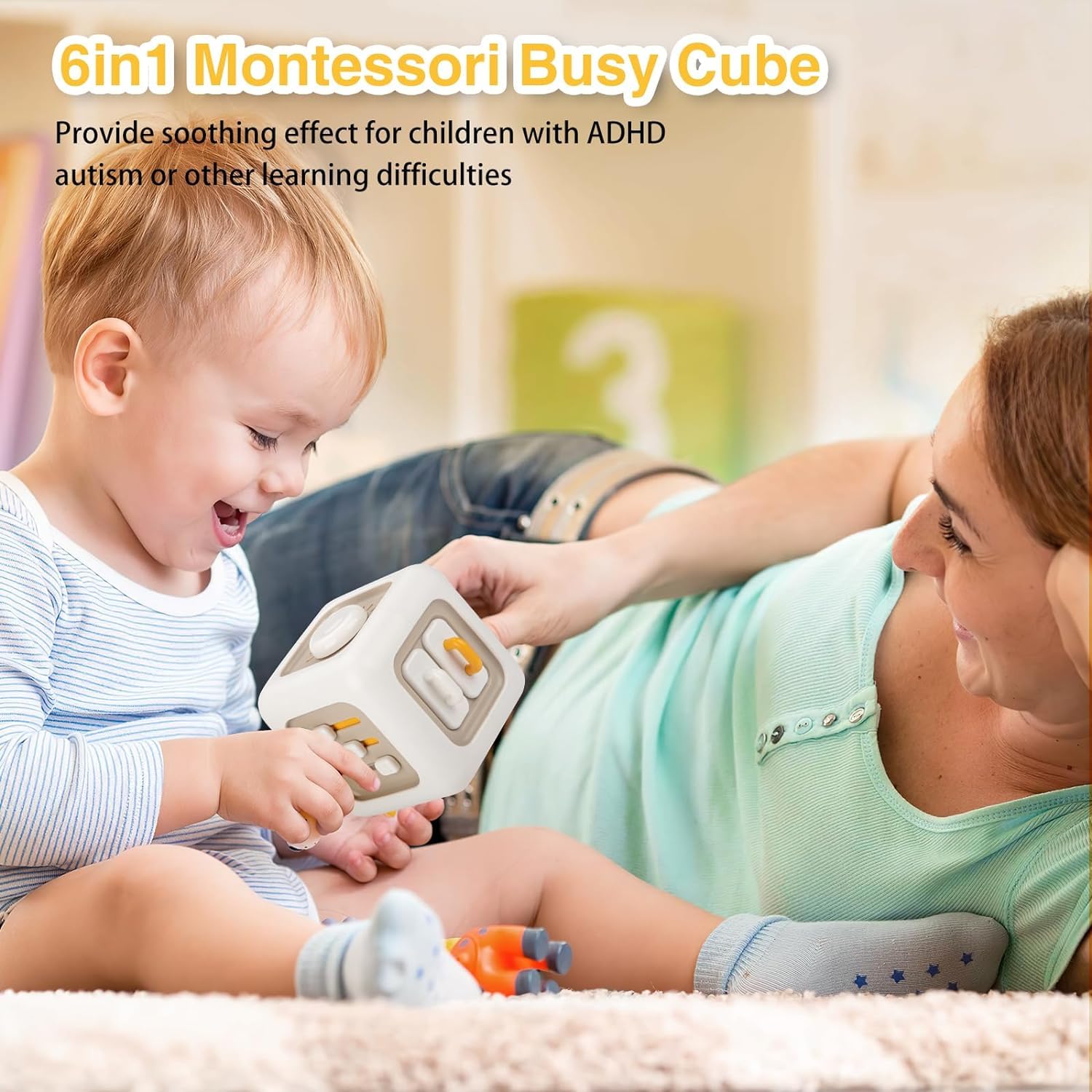 - 【Beschäftigung für Kinder ohne Batterien】Dieser Busy Cube für Kleinkinder benötigt keine Batterien und erzeugt wenig Lärm, was das Gehör des Babys schützt. Die sechs einfachen und interessanten Funktionen halten Kinder beschäftigt und fördern Geduld und Eintauchen in das Spiel