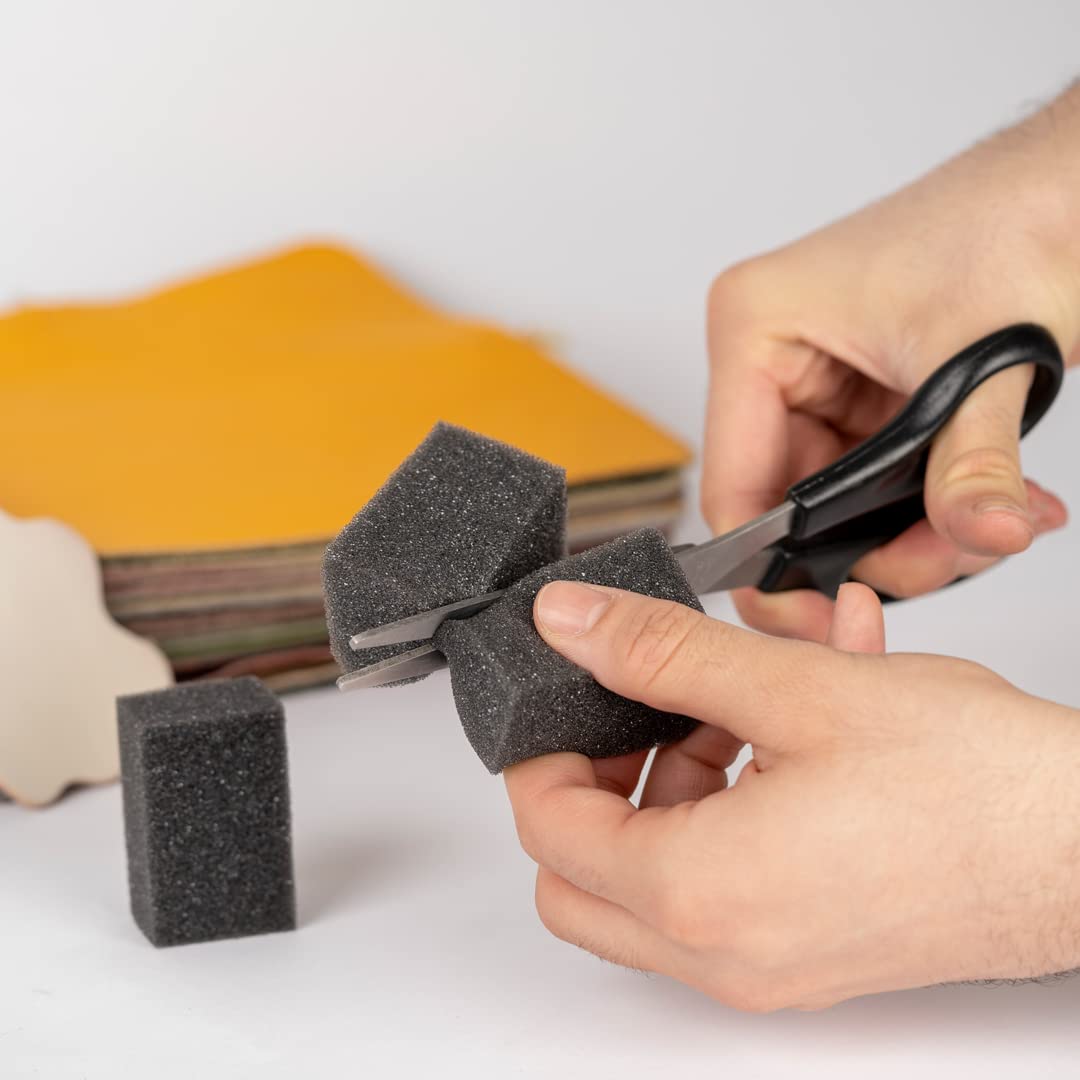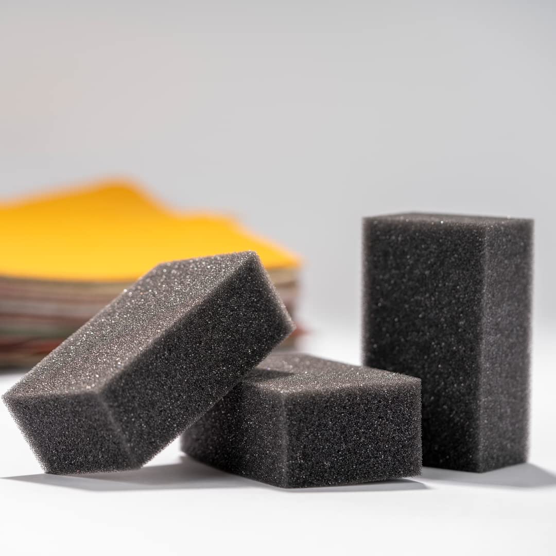 Einzelheiten: Die handgroßen Schwämme sind für großflächige Reinigungen oder Bearbeitungen mit Leder Fresh geeignet. Für feinere Arbeiten können die Schwämme auch geteilt oder spitz zugeschnitten werden. Bei rechtzeitigem Auswaschen können die Schwämme auch wiederverwendet werden.