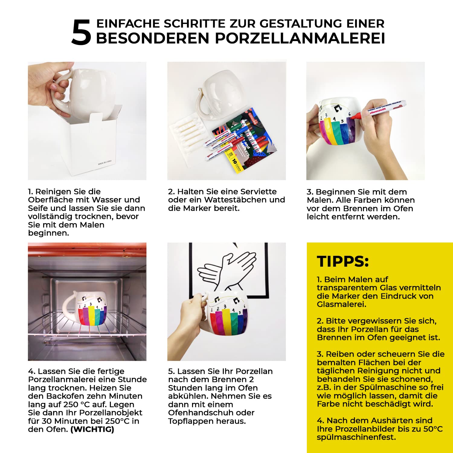 - ✏️ PORZELLANFARBE FÜR KINDER GEEIGNET — Die Glas und Porzellan Stifte werden aus recyceltem Kunststoff hergestellt — Die Minen sind ungiftig und vegan — Das Produkt entspricht den europäischen Vorschriften ASTM D-4236 und EN71
