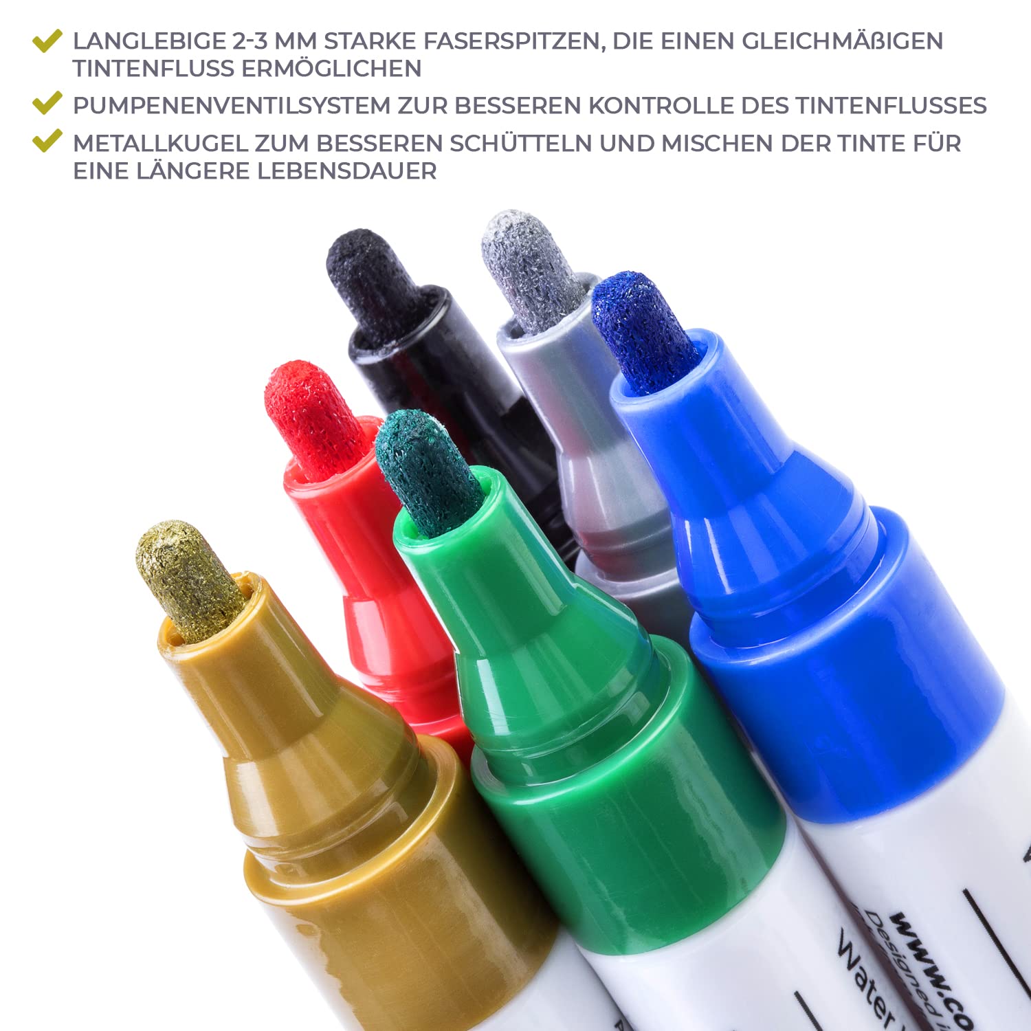 - ✏️ GLEICHMÄßIGER TINTENFLUSS — Glas und Porzellanstifte mit langlebigen 2-3MM Faserspitzen, die einen kontinuierlichen Tintenfluss ermöglichen und das Austrocknen der Marker verhindern — Pumpenventilationssystem zur Steuerung des Tintenflusses und eine Metallkugel, um die Tinte zu mischen und mit der Zeit immer frisch zu halten