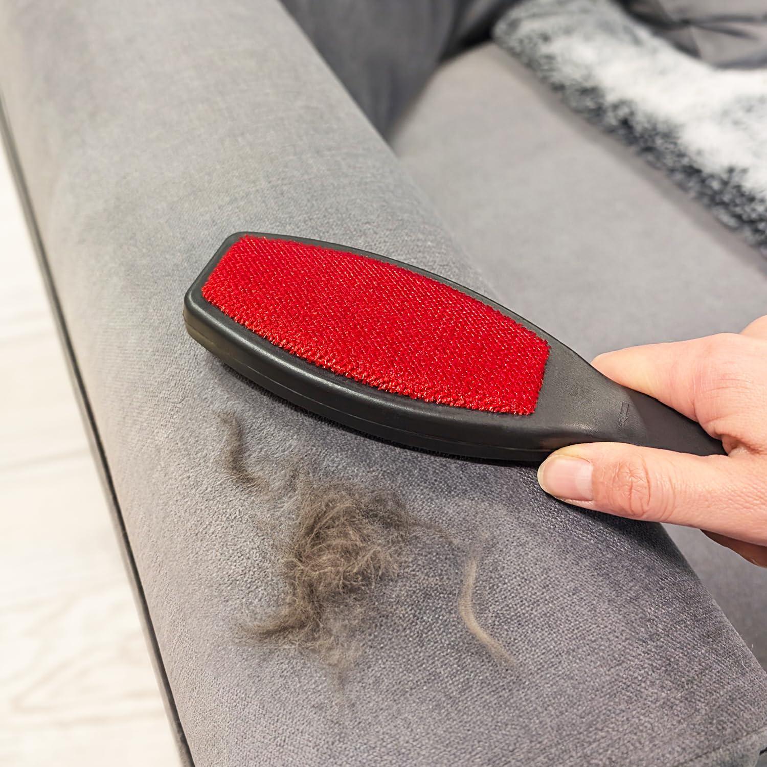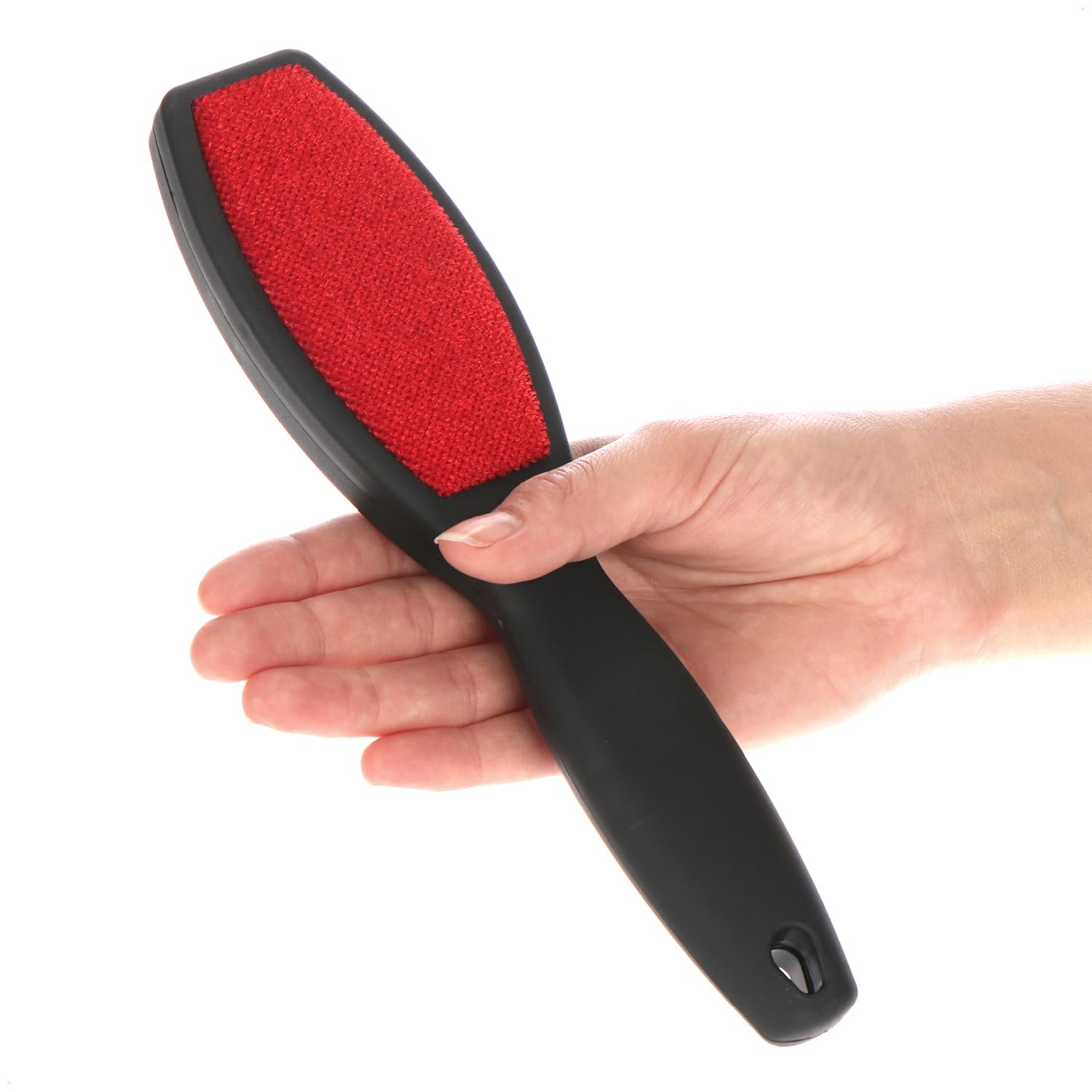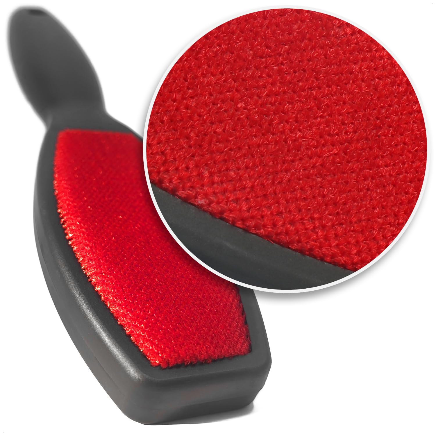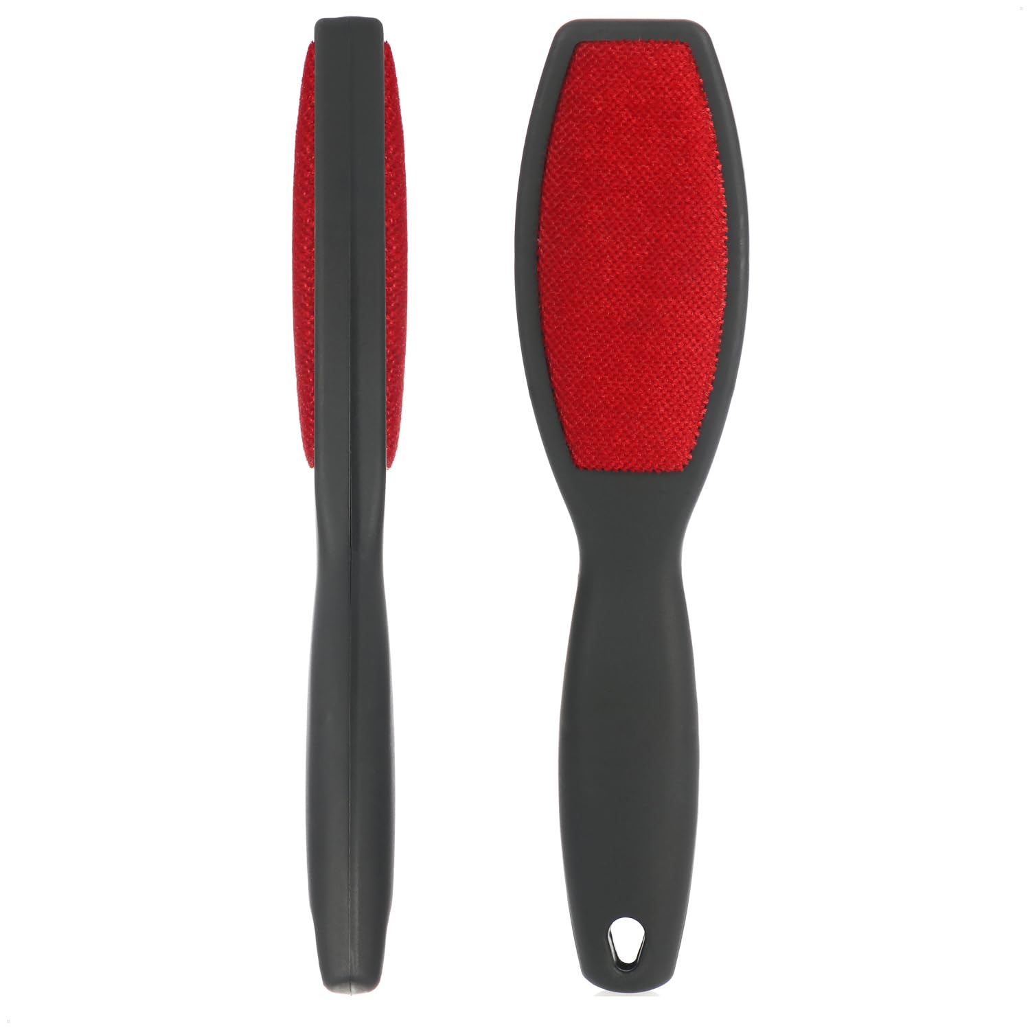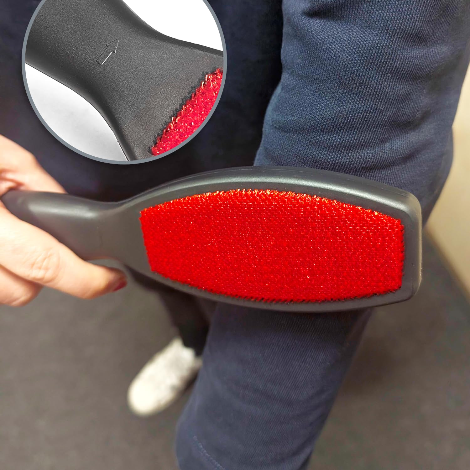 com-four® 2X Kleiderbürsten - doppelseitige Fusselbürste Version 2025 - entfernt Flusen, Tierhaare, Schuppen und Staub - einfache Reinigung von Kleidungsstücken (2 Stück - rot/schwarz)