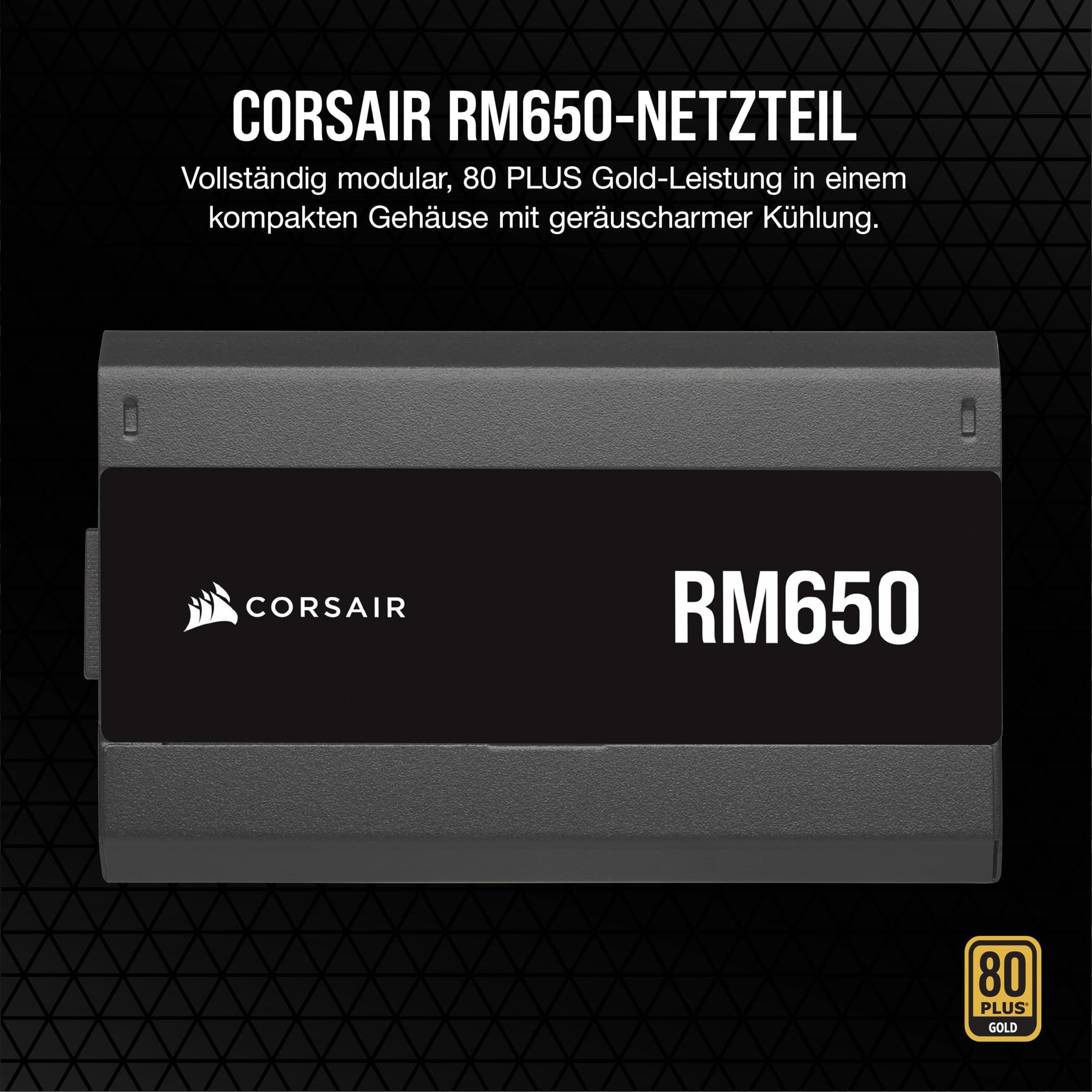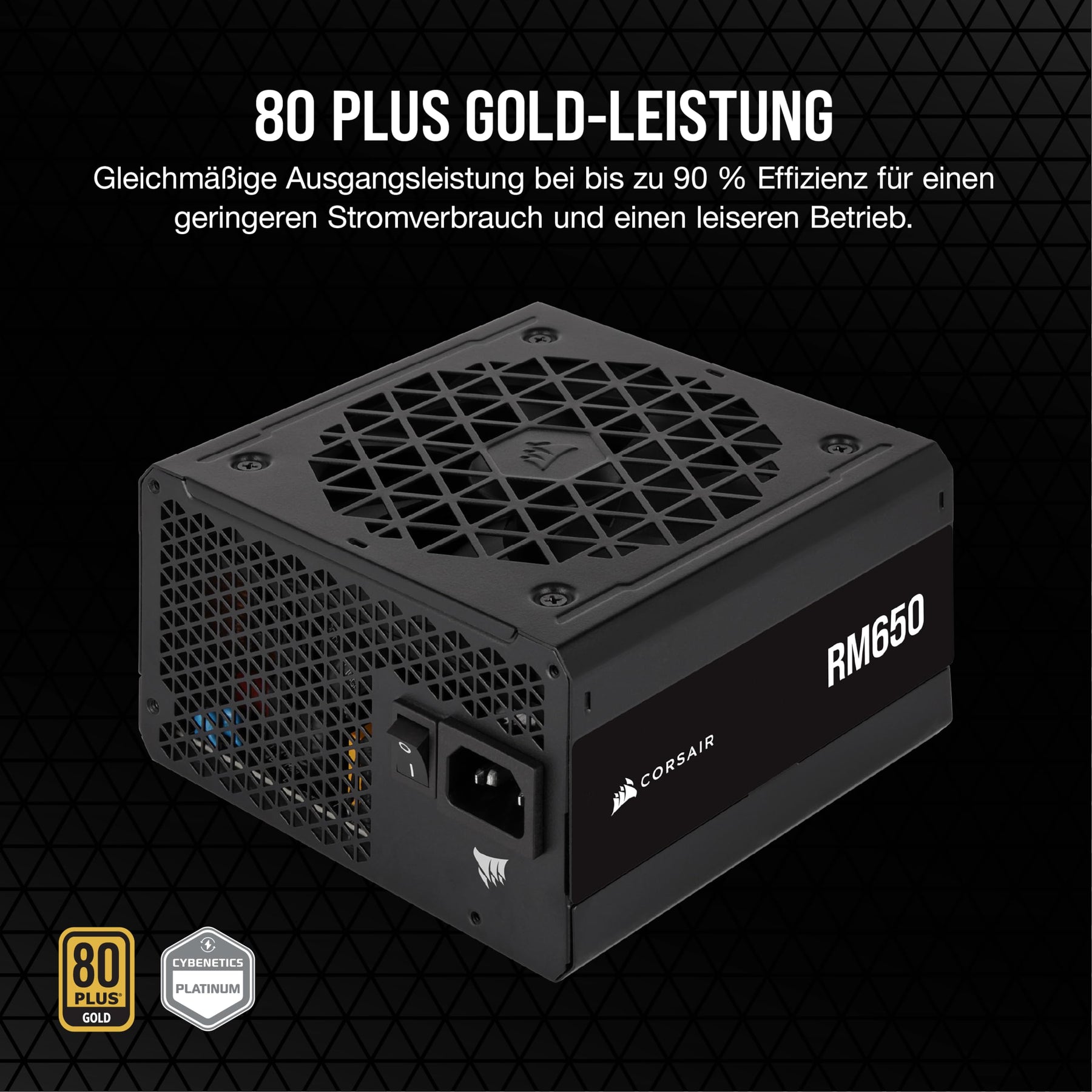 Einzelheiten: CORSAIR RM650 ATX 650W Vollmodulares Netzteil - 80 Plus Gold Zertifiziert - Geräuscharm - Zero RPM Mode - EU - Schwarz