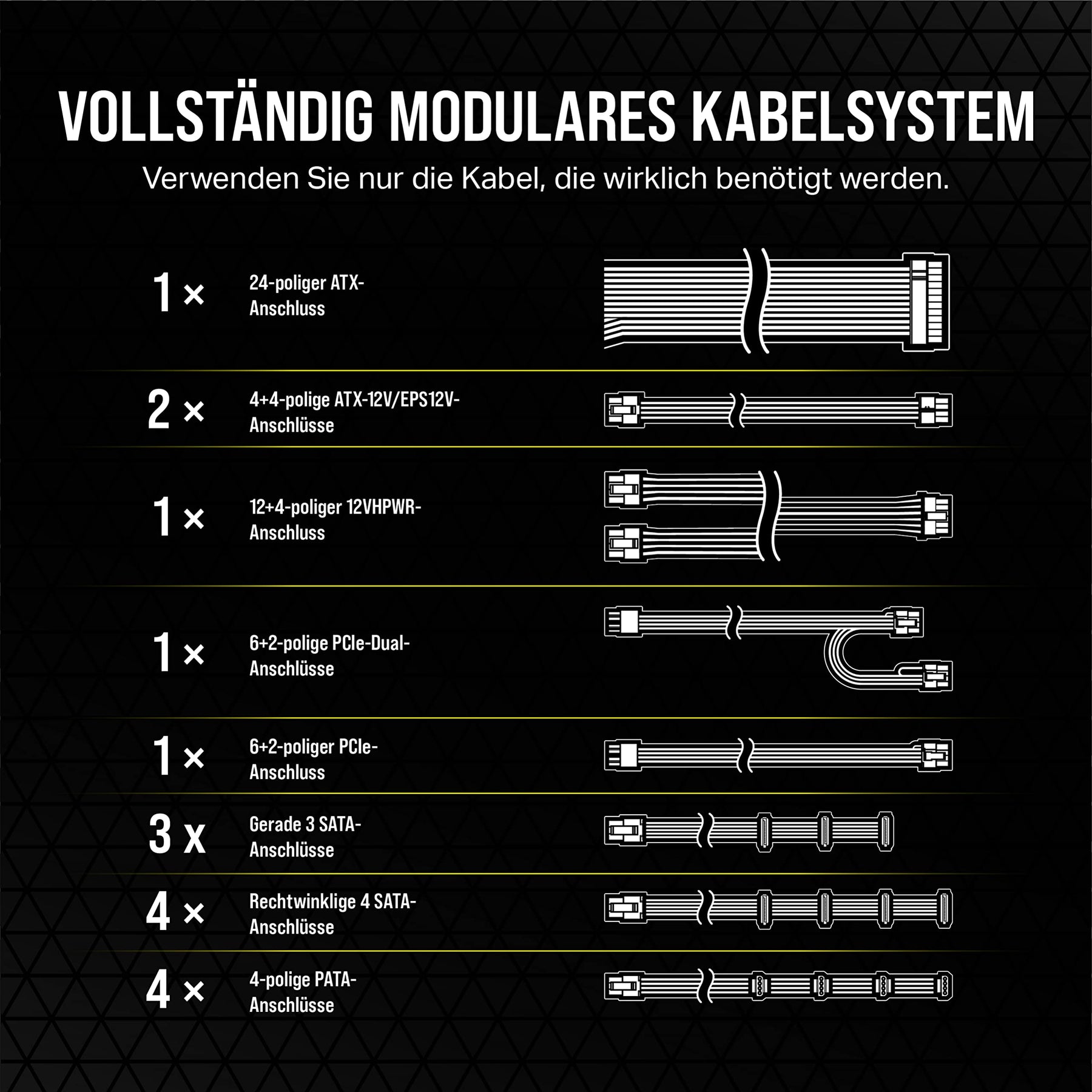 - Vollmodulares Netzteil: Zuverlässiges, effizientes und geräuscharmes Netzteil mit vollständig modularen Kabeln, sodass Sie nur die Kabel anschließen müssen, die Ihr System benötigt.