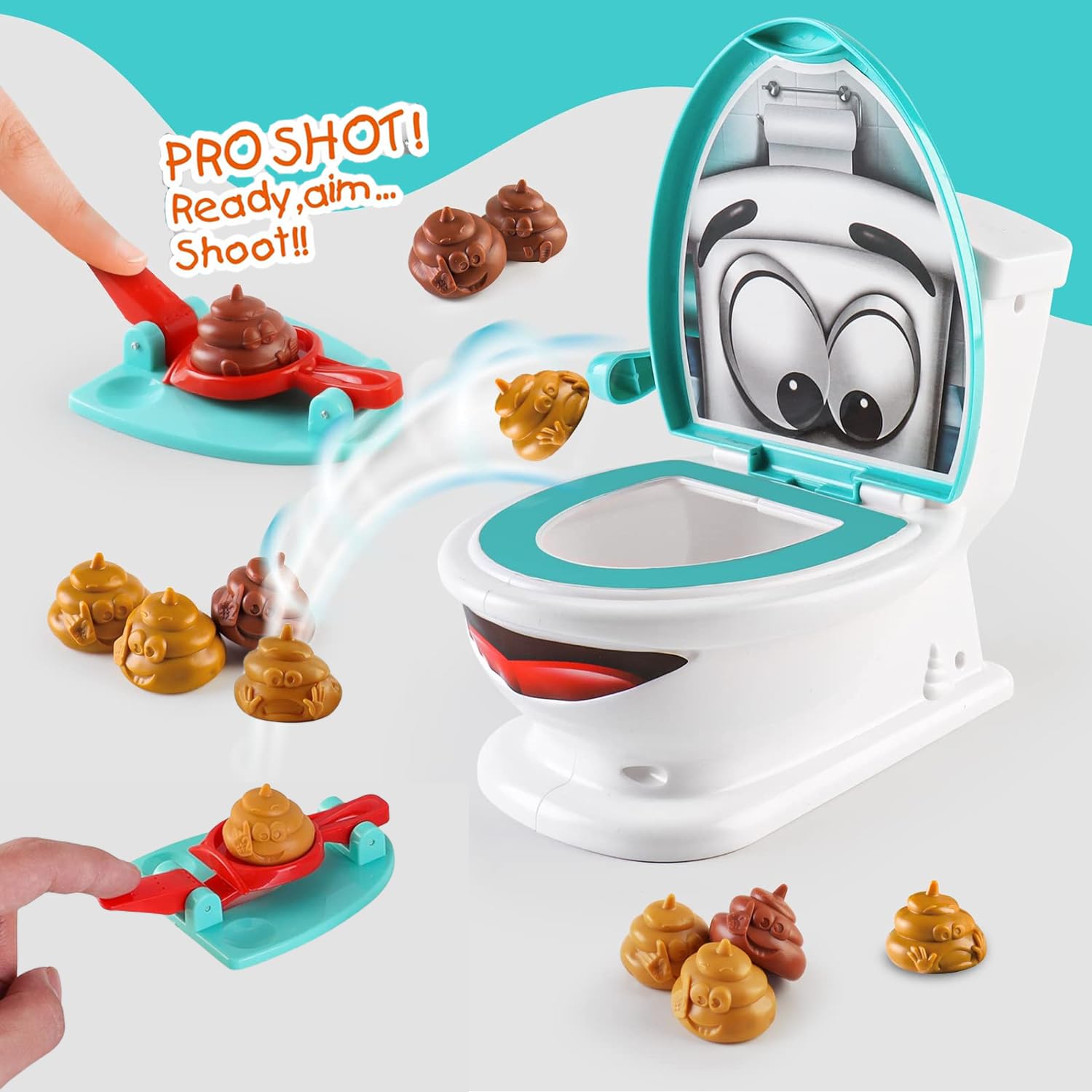 - Poop-Throwing Competition:Two launchers correspond to two players, let 's see who throws accurately and quickly.When playing,children's hand-eye coordination ability also improves, and they can spend hours playing.This is a perfect toy set for families and friends to play together.
