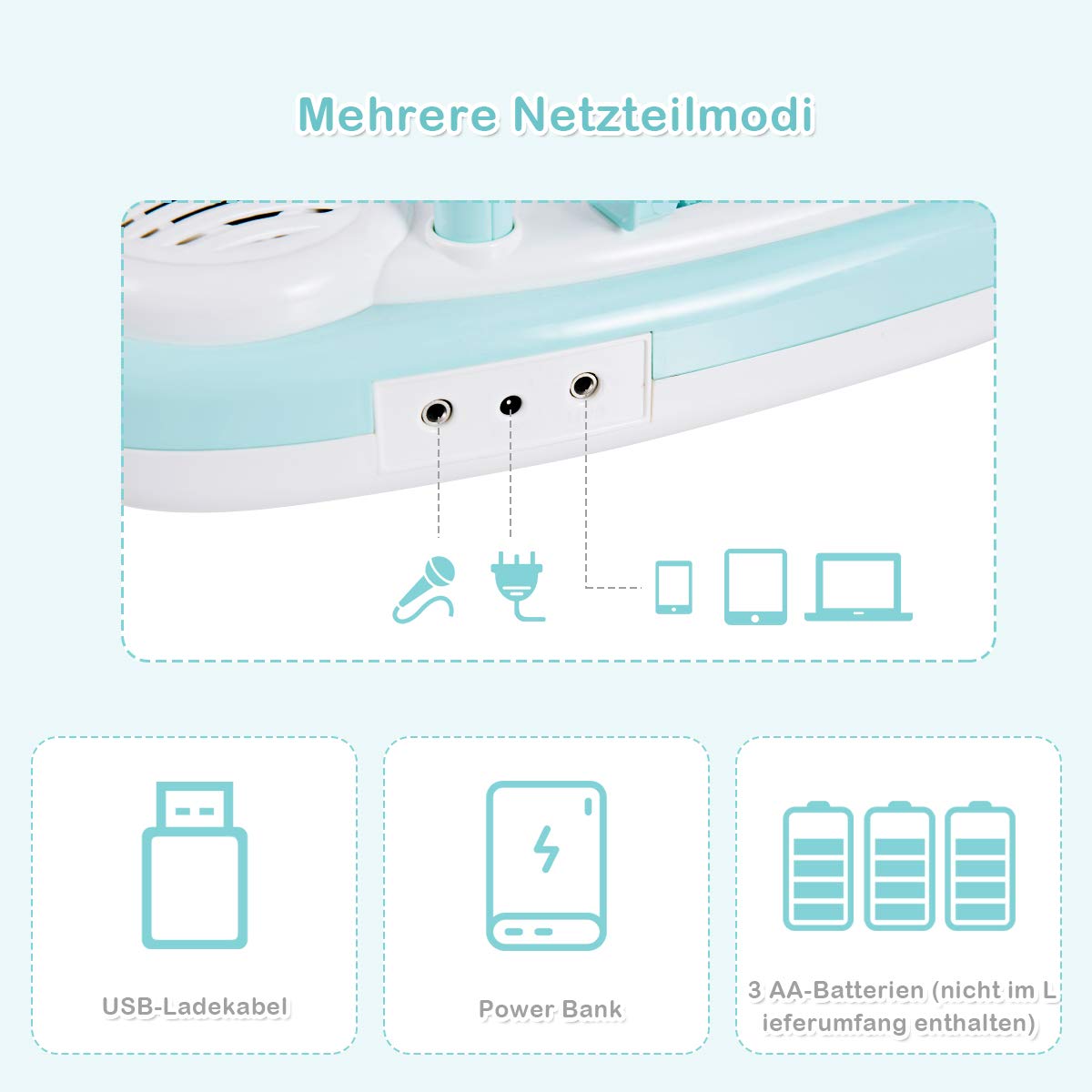 【Einstellbarer Mikrofon & Blitzlichter】Das Keyboard ist mit einem Mikrofon ausgestattet, mit dem die einzigartige Karaoke-Funktion zur Verfügung steht. Beim Spielen leuchten die Lichter auch. Mit der Audio Kabel können Sie Ihr Handy, MP3, PC oder IPad an dem Keyboard anschließen.