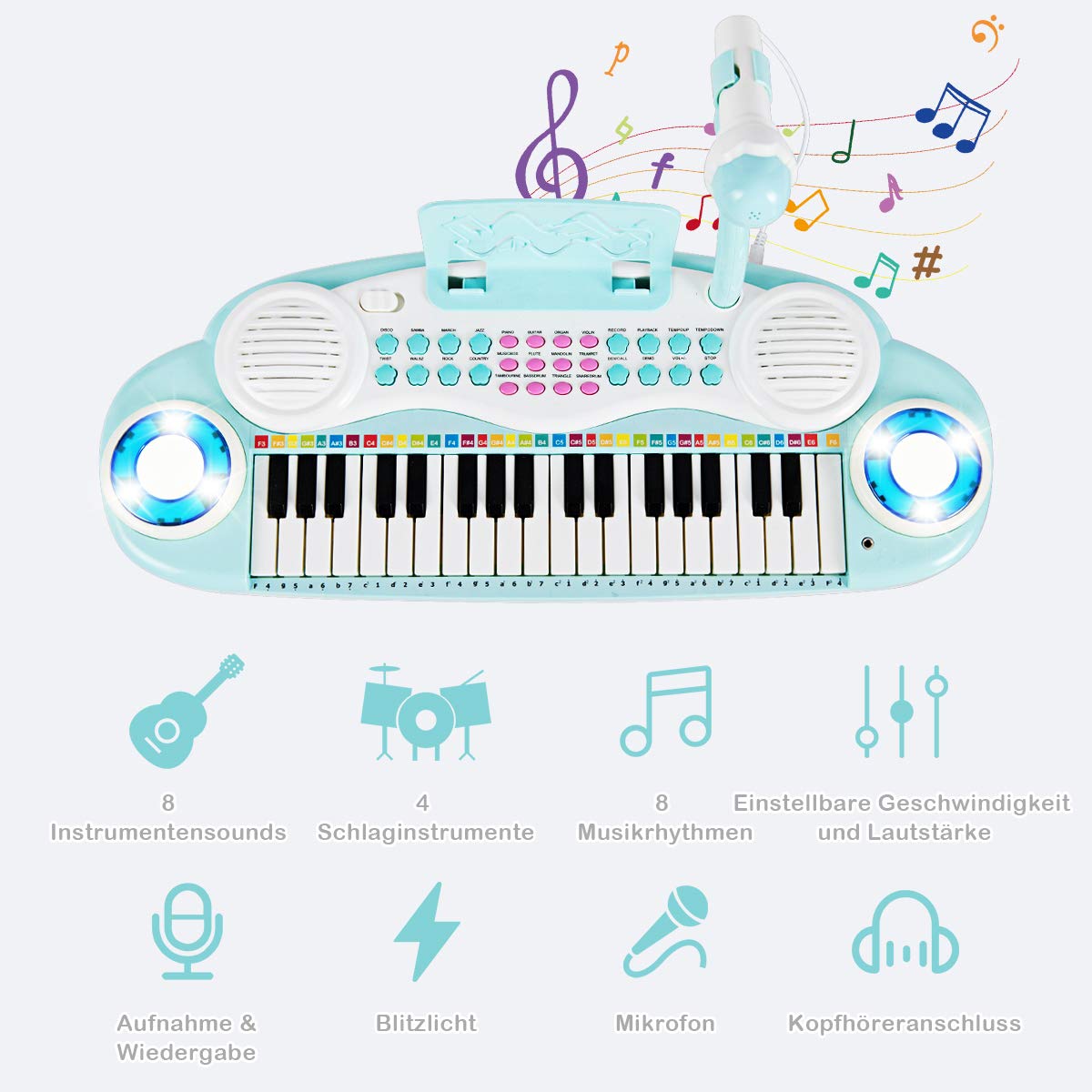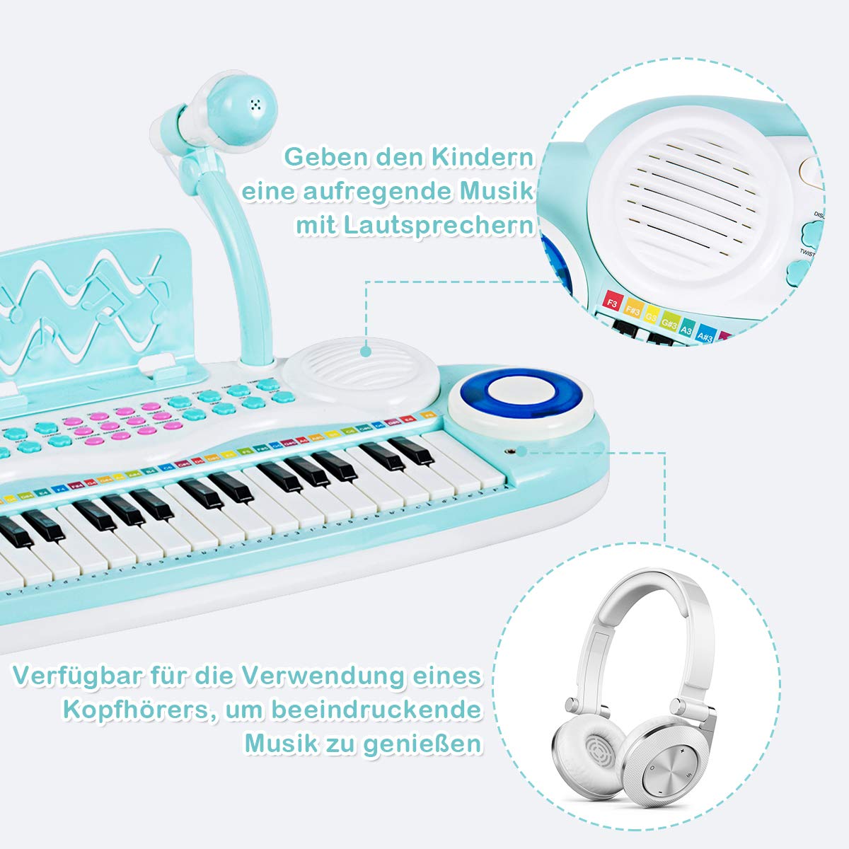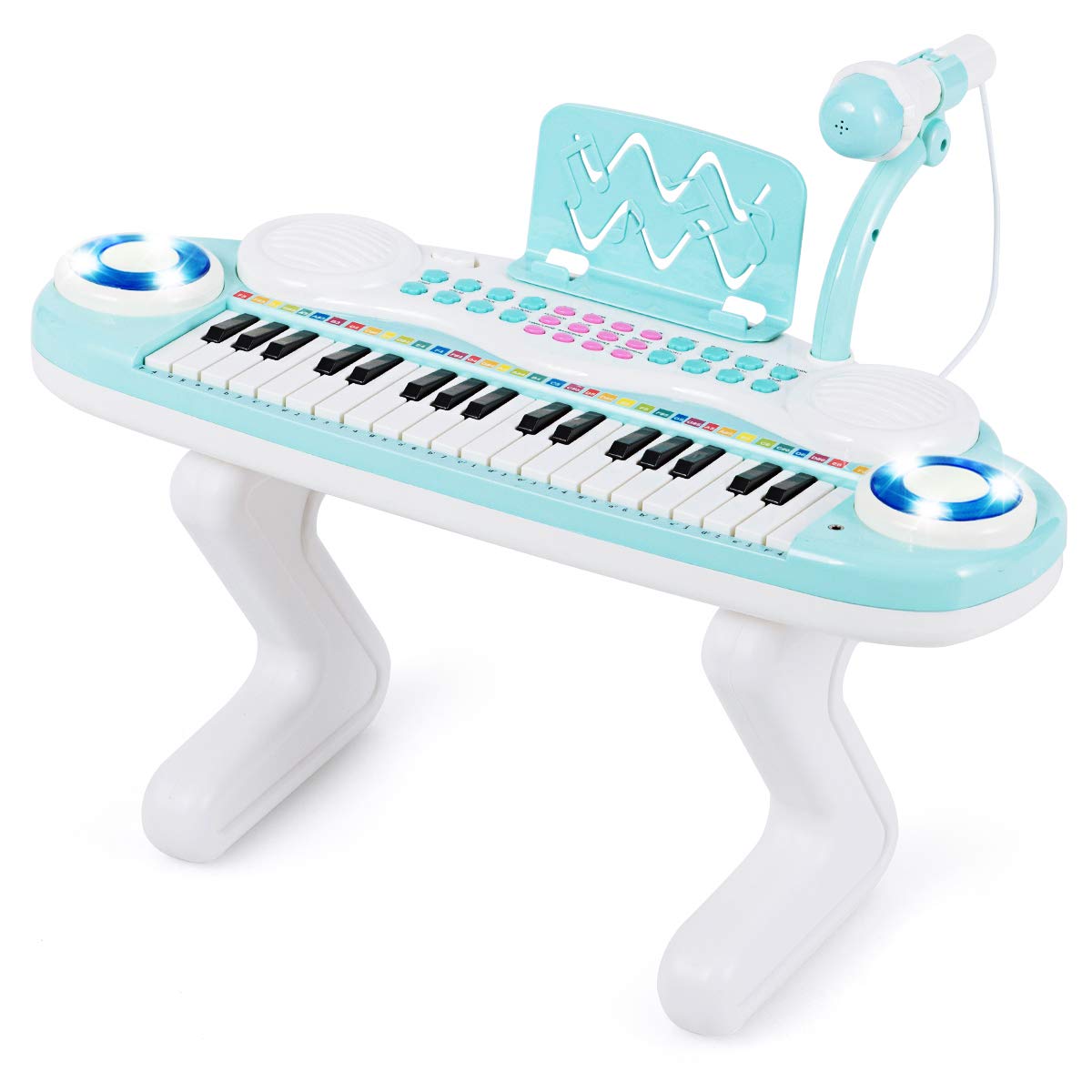 COSTWAY 37 Tasten Klaviertastatur mit Licht, Kinder Keyboard mit Ständer, Klavier Spielzeug elektronisch, Musikinstrument mit Aufnahme- und Abspiel-Funktion, inkl. Mikrofon (Blau)