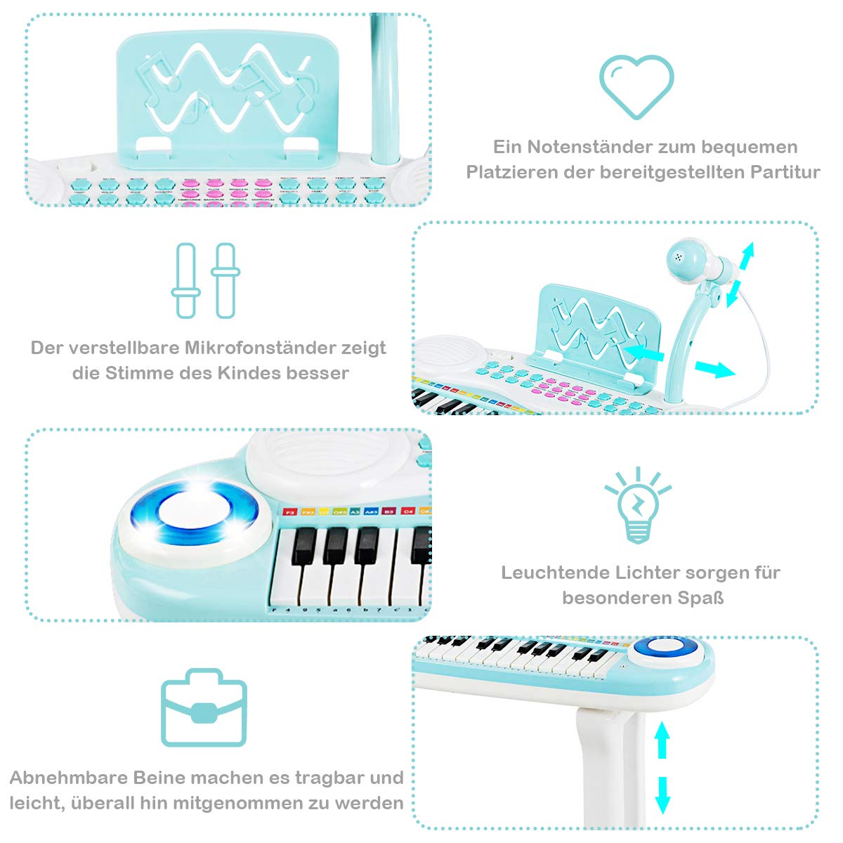 【Perfektes Geschenk für Kinder】Mit den abnehmbaren Beinen ermöglicht das Keyboard es, Kinder ihr Musiktalent irgendwo zu zeigen und den Optimismus der zu entwickeln, wenn sie fröhliche Musik in das Spiel integrieren. Gesamtmaße: 48 x 20 x 38 cm (L X B X H); Empfohlenes Alter: Ab 18 Monaten.