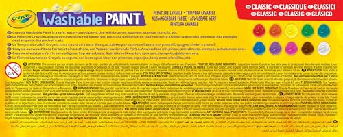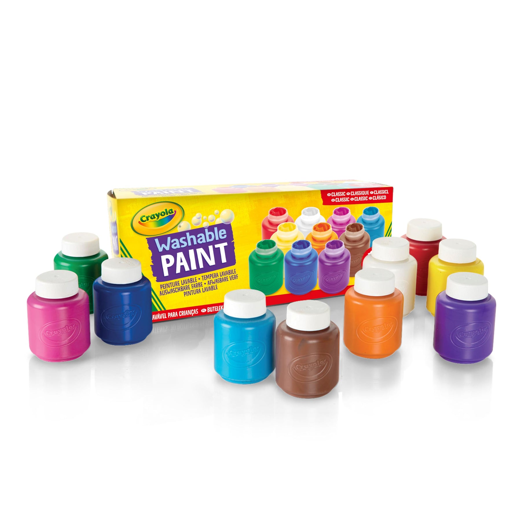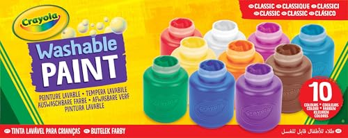 - CRAYOLA WASHABLE PAINTS – 10 praktische Fläschchen à 59 ml mit wiederverschließbarem Deckel, ideal zum Mitnehmen im Rucksack oder für die Aufbewahrung im Kinderzimmer.