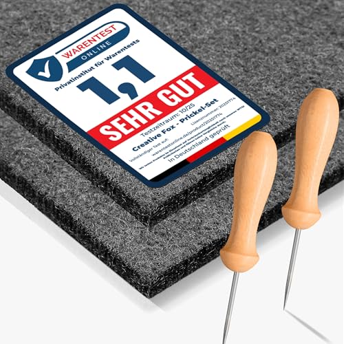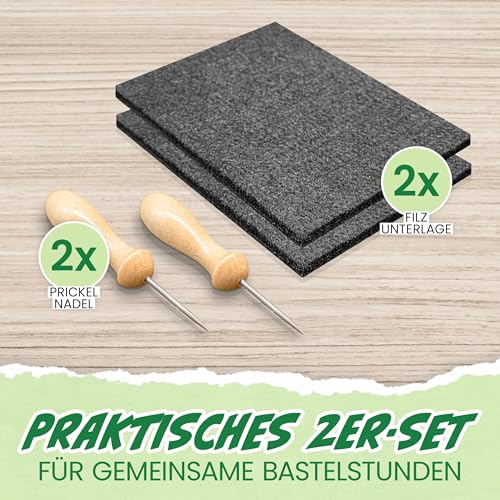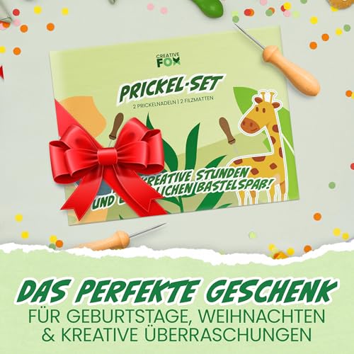 Creative Fox 2er Prickelnadel Set Kinder - Prickelset für Kinder - 2x Prickelnadel mit Holzgriff & 2x Prickelfilz (20cm x 15cm x 1cm) – Ergonomisch & sicher – Ideal zum Prickeln – Made in Germany