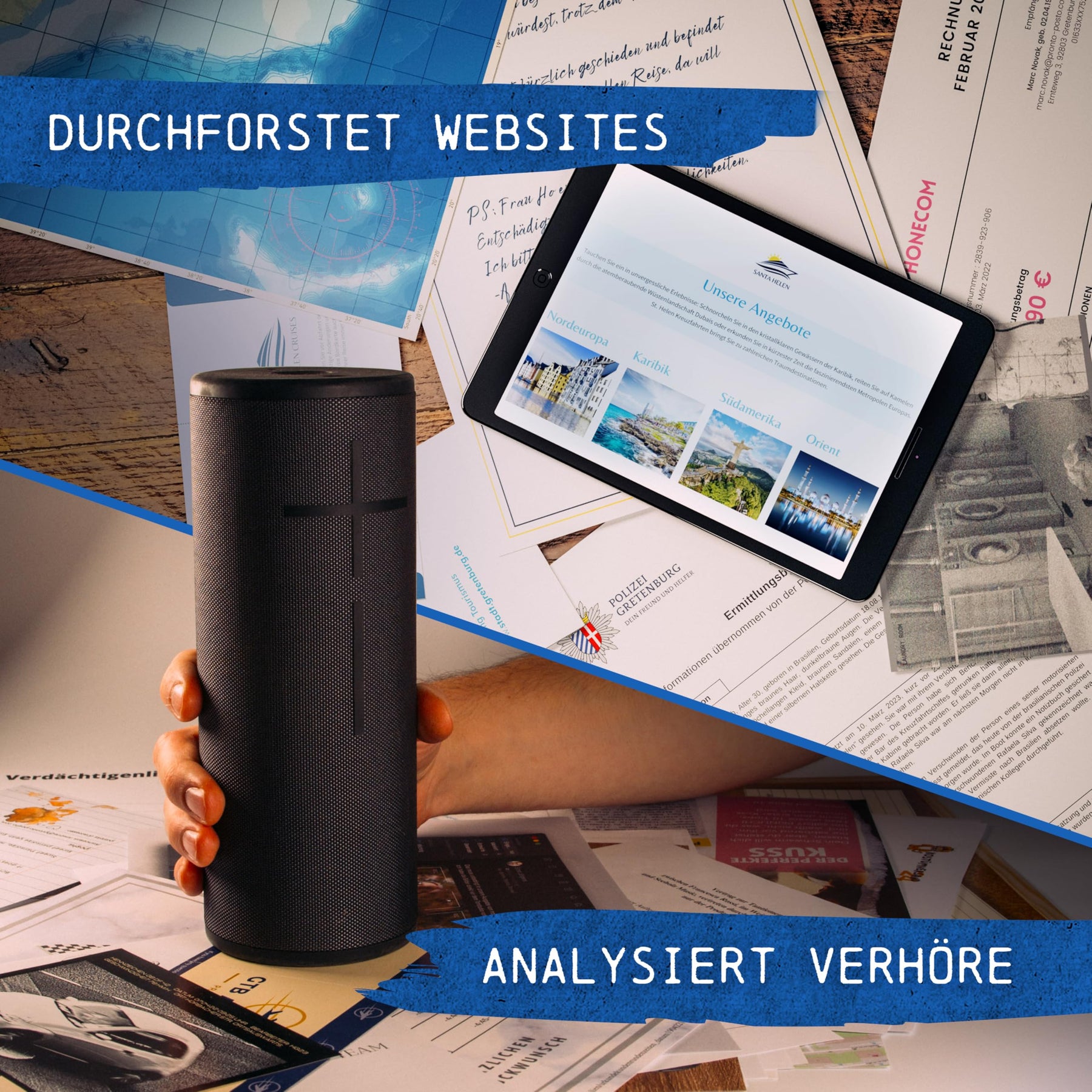 - 🔎 EINE MULTIMEDIALE ERMITTLUNG – Untersucht authentische Briefe, Ausweise, Fotos und Dokumente und verfolgt digitale Spuren im Internet. Der Täter hat überall Hinweise hinterlassen! Arbeitet als Team, kombiniert Beweise und deckt die Wahrheit auf. Überprüft eure Ergebnisse auf der Spielwebseite und lasst euch vom Kommissar sagen, ob ihr richtig liegt.