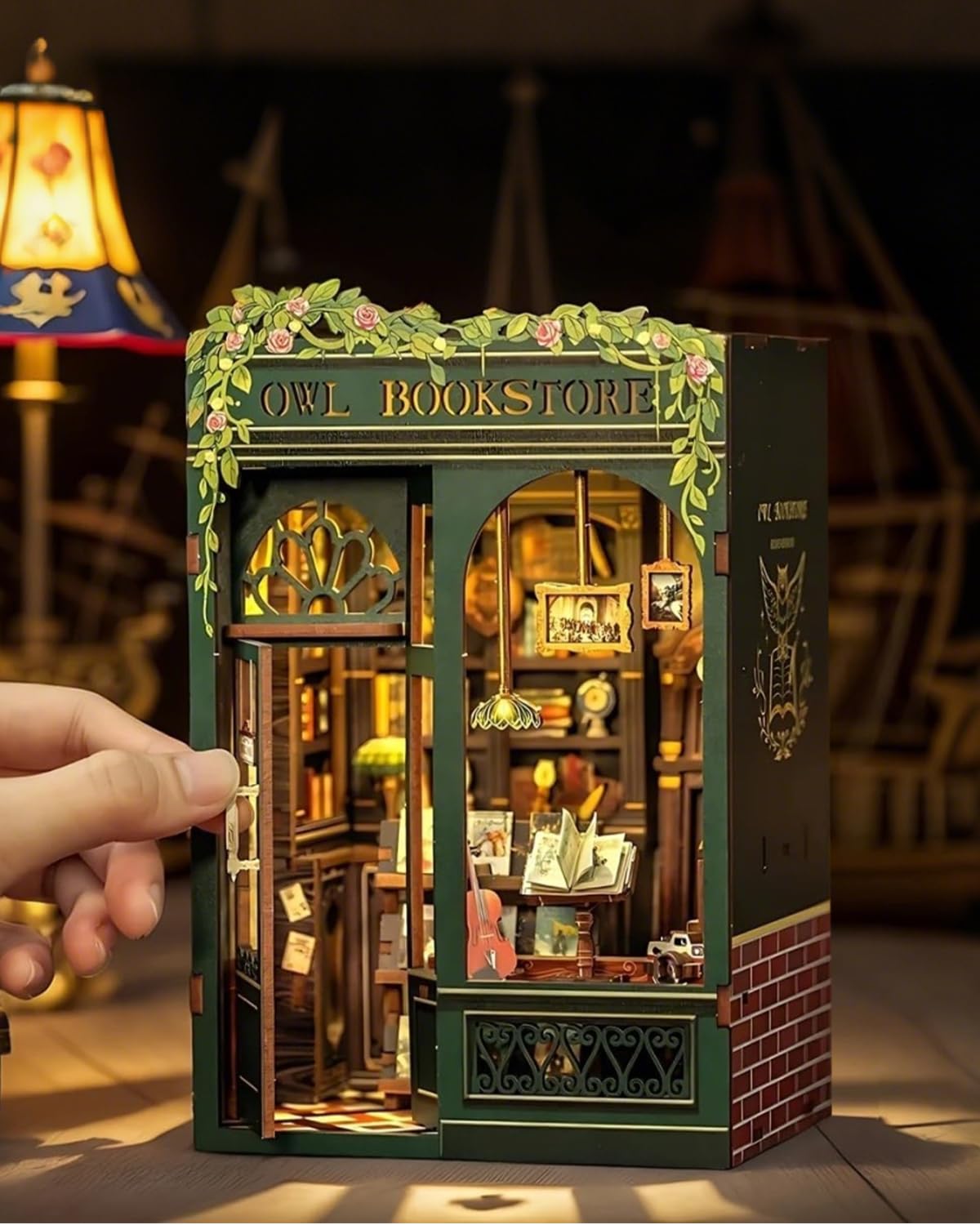 - 【Book Nook Kit – OWL Bookstore】Die maßstabsgetreue Buchhandlung verbindet britischen Stil mit Elementen der Renaissancekunst und schafft so ein starkes Gefühl von Geschichte und künstlerischer Atmosphäre. Der Besuch der Buchhandlung ist wie eine Reise durch Zeit und Raum, in eine glorreiche Ära voller Kunst und Weisheit