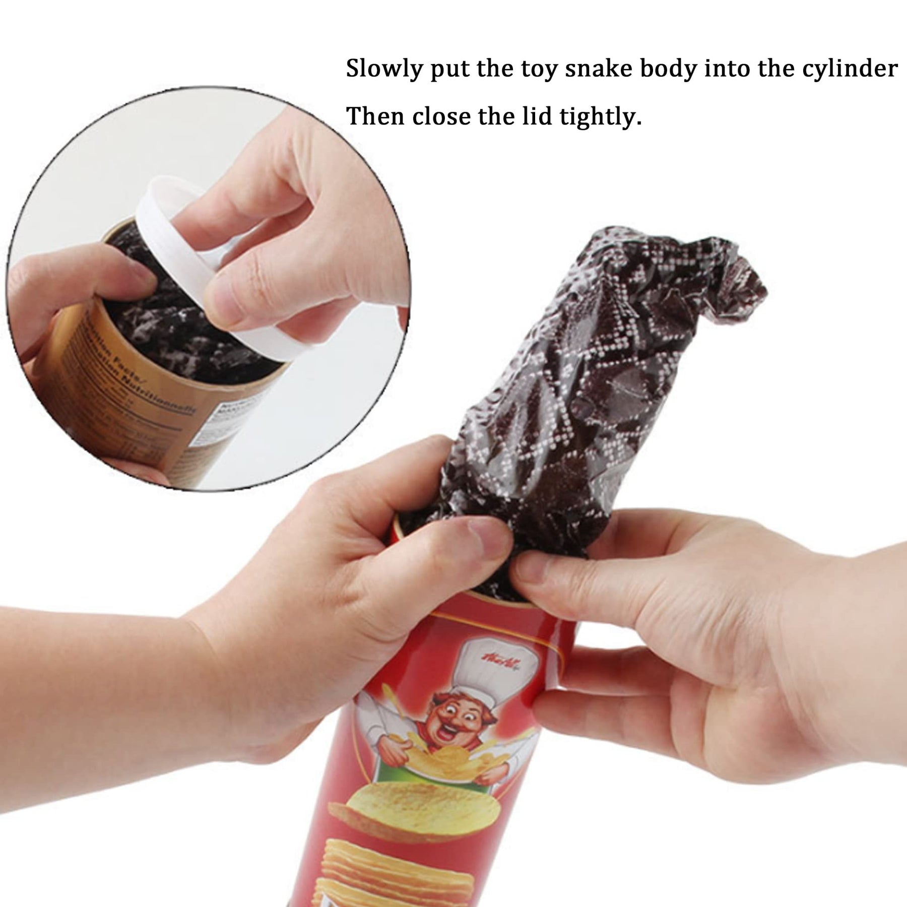 • 【Gebrauchsanweisung】 Wenn Ihre Freunde oder Familienmitglieder dieses gewöhnliche Kartoffelchipglas öffnen, bringt der Moment, in dem die gefälschte Schlange herausspringt, ihre Schreie hervor und bringt Ihnen Spaß. Ein tolles klassisches Streichspielzeug, um jemanden anzuziehen und alle Ihre Freunde zu täuschen.
