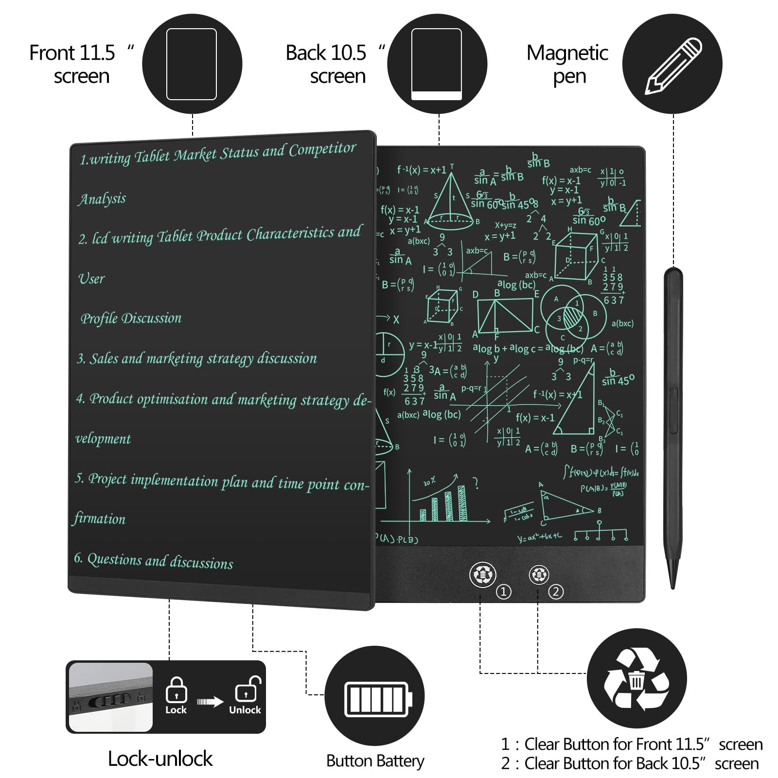 Czemo LCD-schreibtafel Erwachsene, Dual-Screen LCD-Schreibtafeln mit 2X Schreibfläche 11,5 Zoll +10,5 Zoll, HD Einfarbig 0.5mm Schreiblinie, LCD Schreibtablett für Büro, Memo, Notizbuch, Agenda