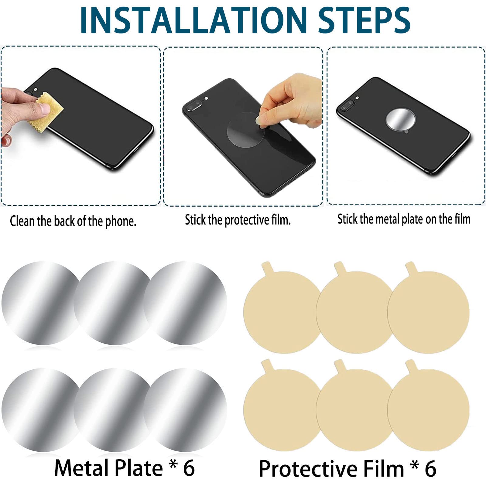 - Exquisites Perfekter Ersatz: 6 Stück Runden Handy Metallplatte für magnet, würde eine glatte Oberfläche ohne scharfe Kanten Ihre Finger und Ihr Telefon nicht beschädigen. Normalerweise als perfekter ersatz für Magnethalterung. Hinweis: Diese Metallplatten sind keine Magnetplatten, sie werden mit universellen Magnethalterungen verwendet.