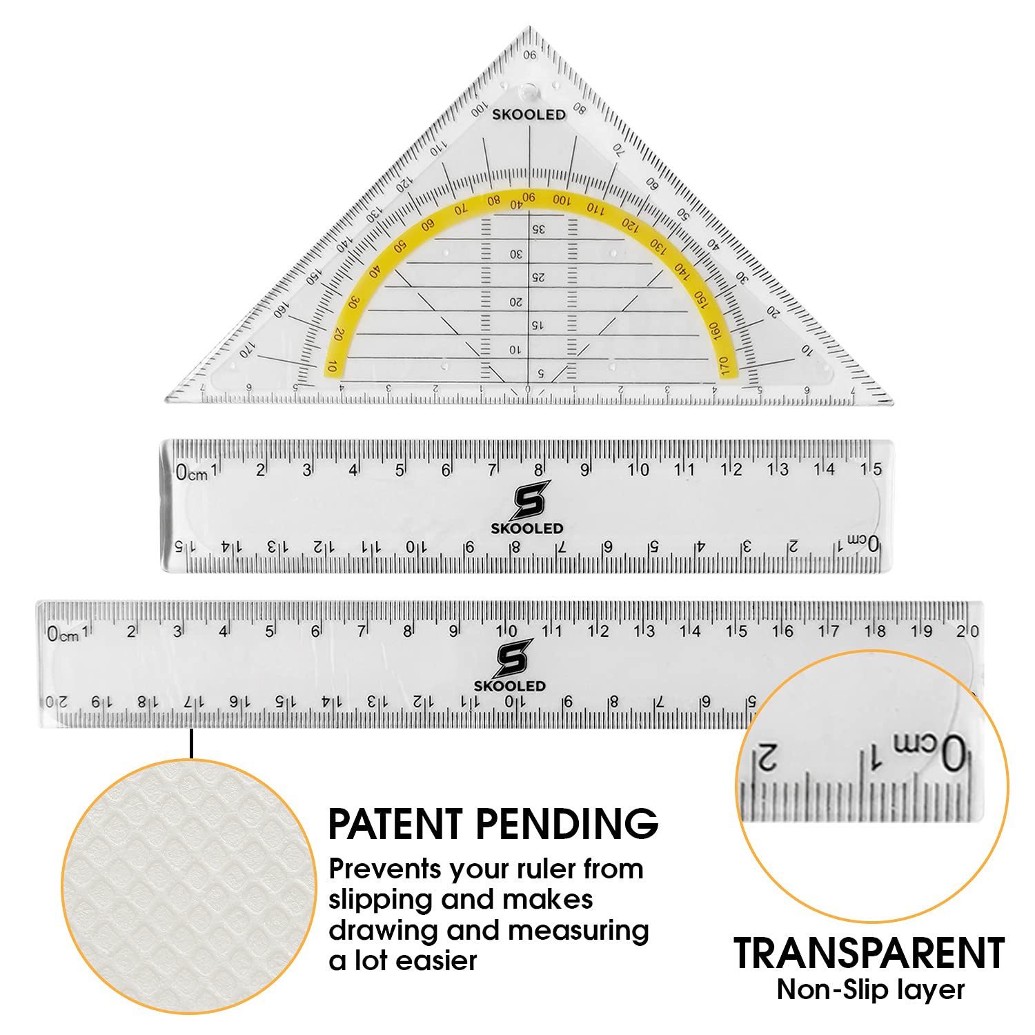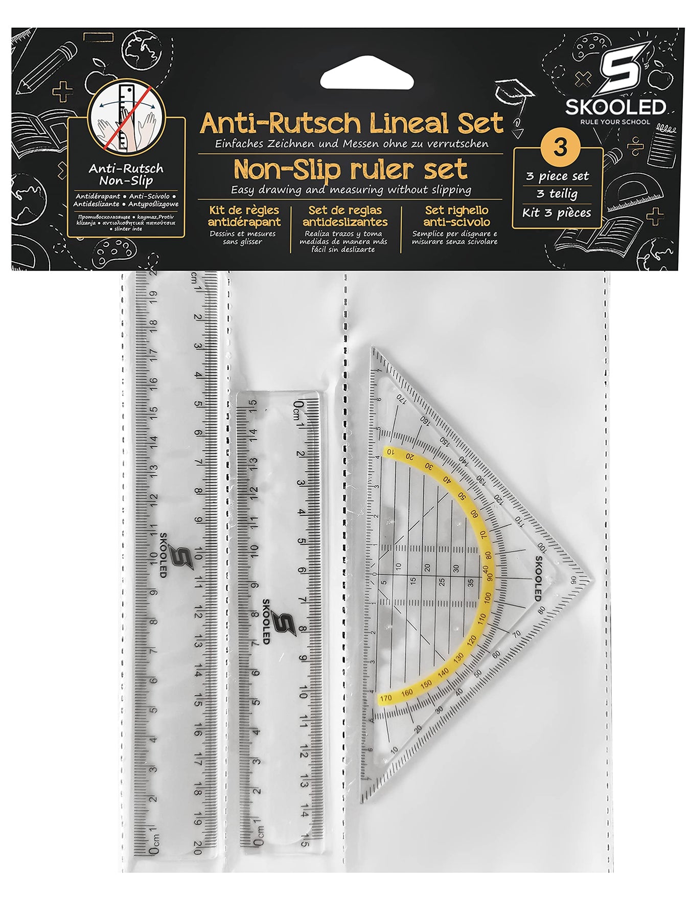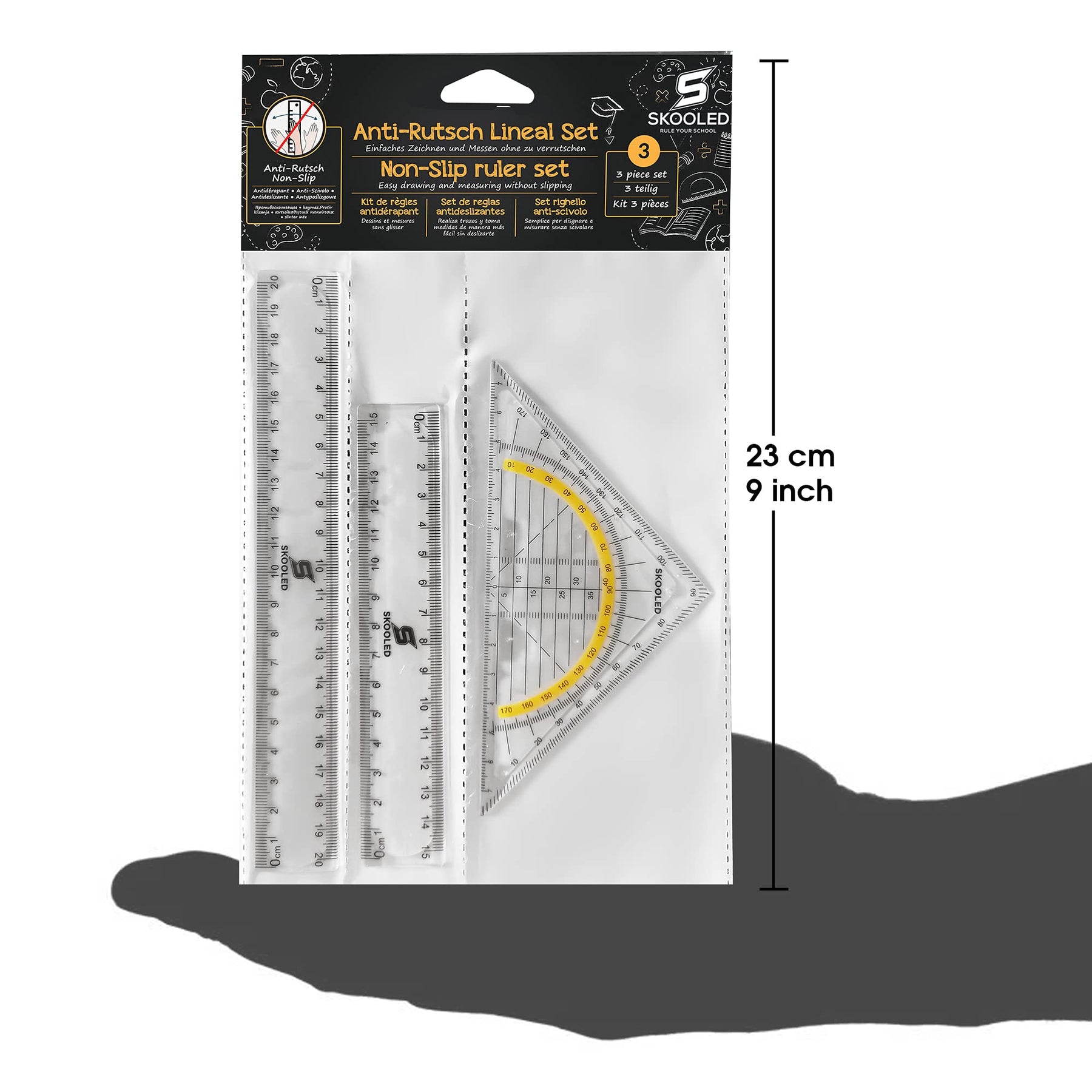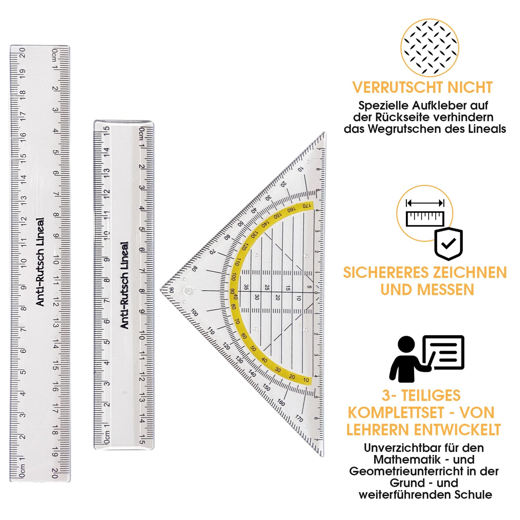 Das AntiRutsch Lineal und Geodreieck 3 in 1 Set rutschfestes Set zum sicheren und einfachen Zeichnen und Messen