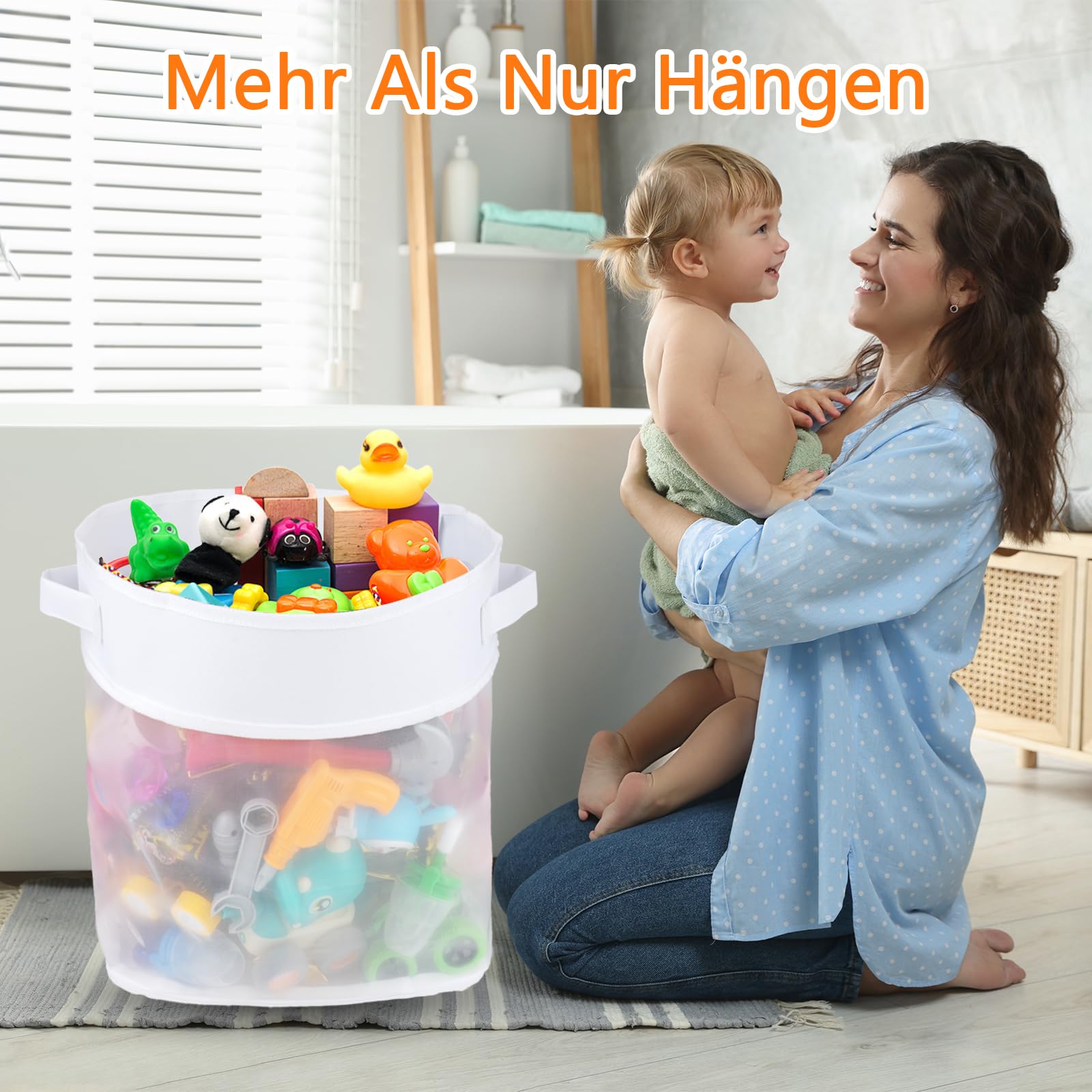Halten Sie Ihre Badewannenspielzeuge mit der Badespielzeug Aufbewahrung ordentlich und trocken! Die durchdachte Netzstruktur sorgt dafür, dass Wasser leicht abgeleitet wird, während das große Fassungsvermögen von 4,15 Gallonen genügend Platz für eine Vielzahl von Badespielzeugen bietet und den Kindern hilft, ihre Aufbewahrunggewohnheiten zu entwickeln.