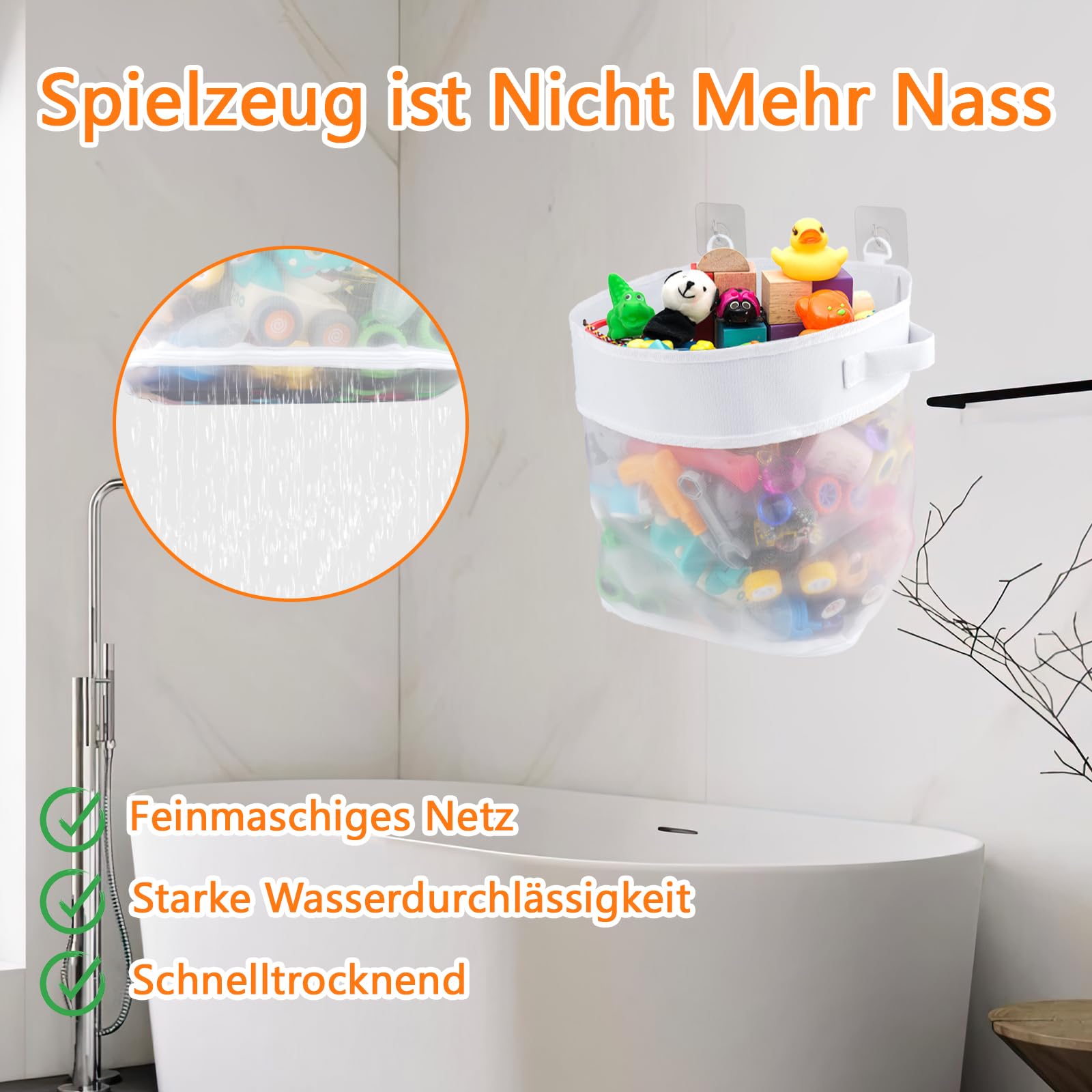 1 Aufbewahrungstasche für Badespielzeug und 2 selbstklebende Haken