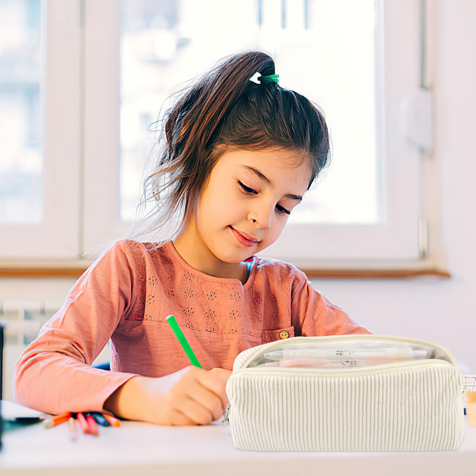 Deepton Federmäppchen Cord, Stifte Mäppchen Mädchen, Beige Aesthetic Pencil Case Girl Adults, Schlamppermäppchen Damen, Federtasche Erwachsene Federmappe für Schule, Büro