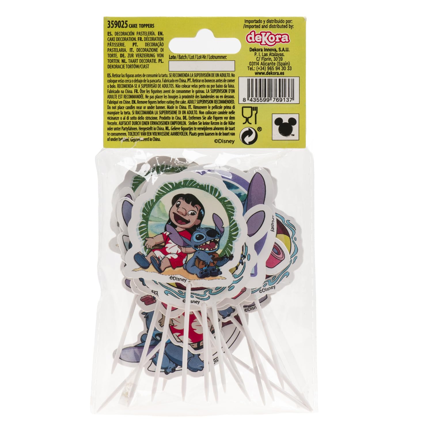 dekora - Cupcake Toppers von Lilo und Stitch in 8 Designs - Tortenstecker zum Dekorieren von Cupcakes, Muffins, Torten und anderen Süßigkeiten - Lebensmittelechte Dekoration für Backwaren - 16 Stück