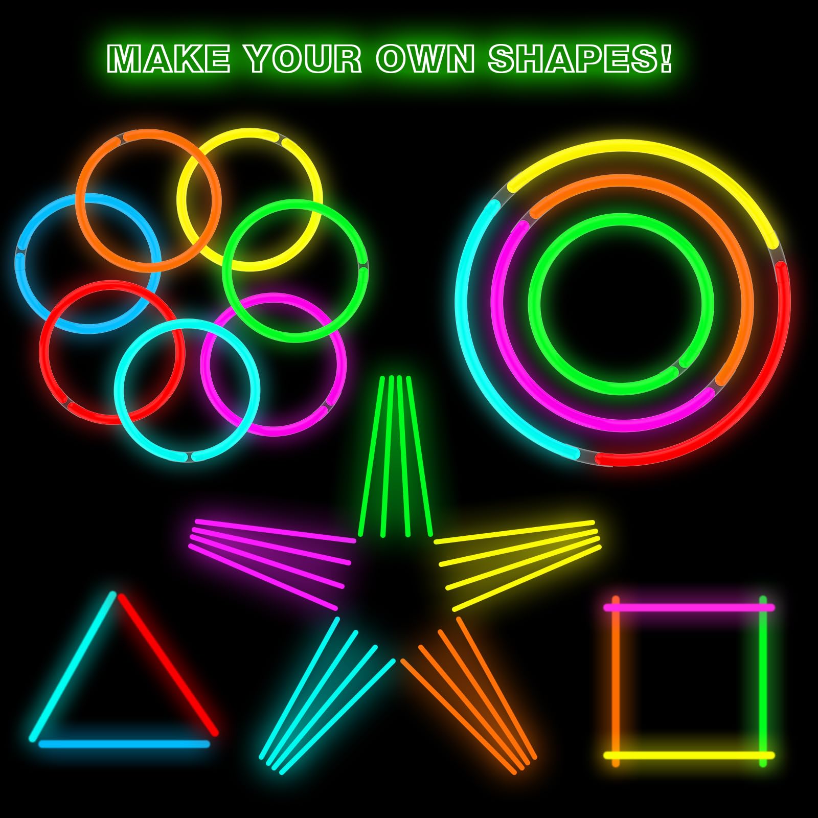- ❤ 【Paketliste】 100 Party-Packung mit flexiblen 8-Zoll-Leuchtstäben in Premium-Qualität und 100 Anschlüssen; Spaß für Kinder und Erwachsene als leuchtende Partydekoration, Karnevals-Massenpreise und Schwarzlicht-Partyzubehör.