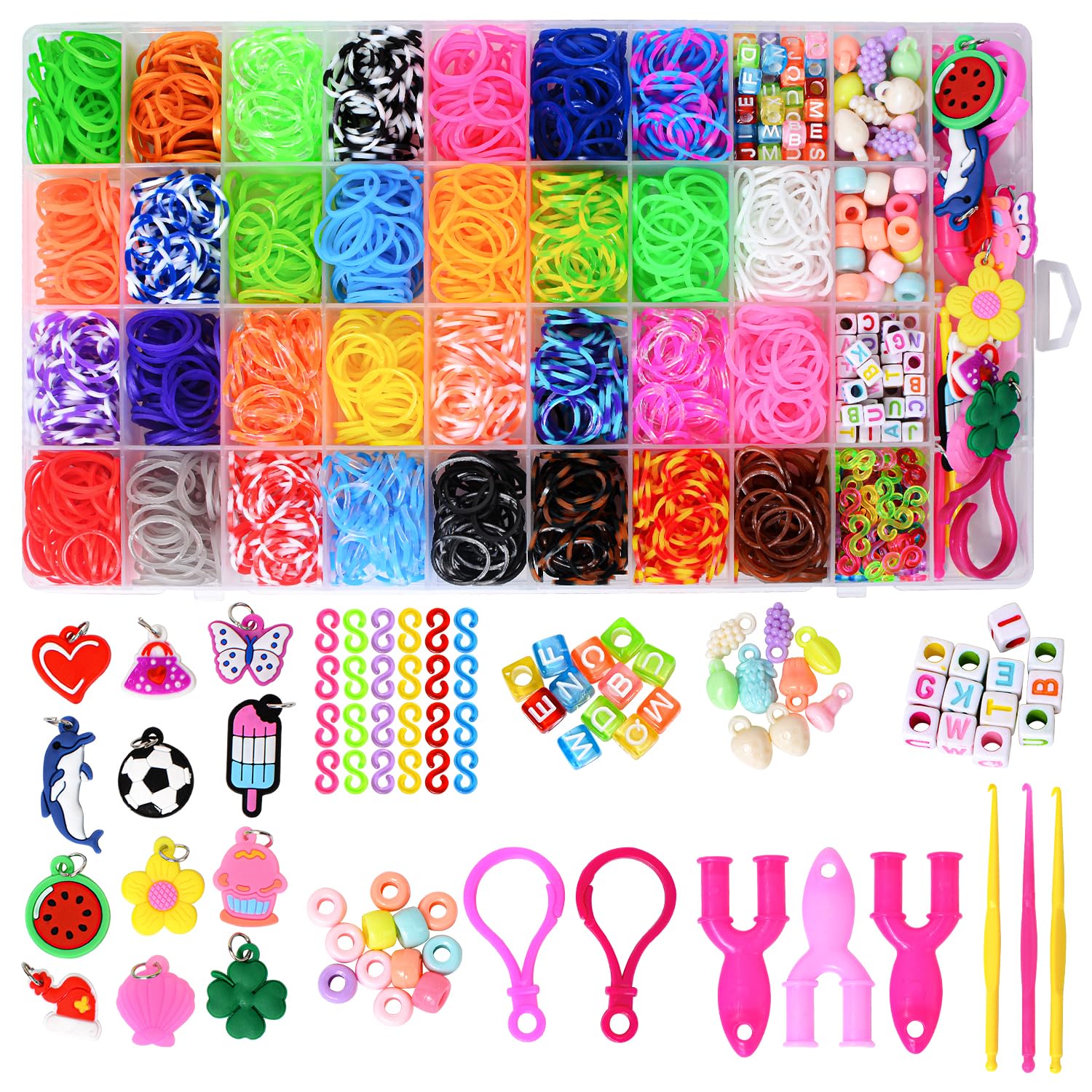 - 【Gummibänder für Armbänder】Dieses handgefertigte kreatives Set mit Gummibändern ist mit etwa 2200+ Gummibändern, 3 Slingsshot-Klammern, 2 Haken, 12 Cartoon-Dekorationen, 100 s-förmigen Schnallen, 4 Arten von Perlen und großartigen DIY-Accessoires ausgestattet.