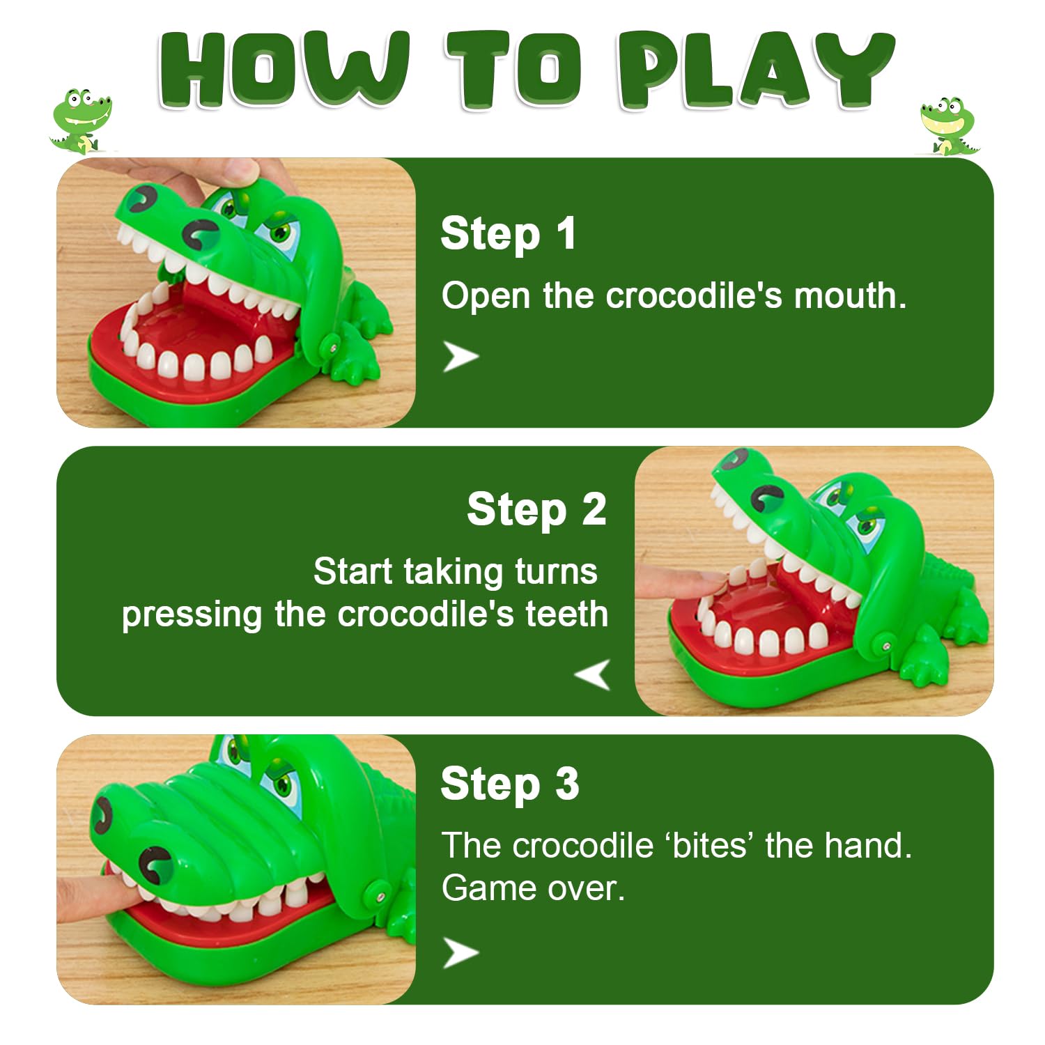 - 【Die Spielregeln】Öffne das Krokodil Spiel für Kinder Zähne so weit wie möglich und halte es offen. Drücke auf einen der Spielzeugzähne, bis du auf den Teil drückst, der sich schließt, und der Spielzeugmund wird sich schnell schließen.