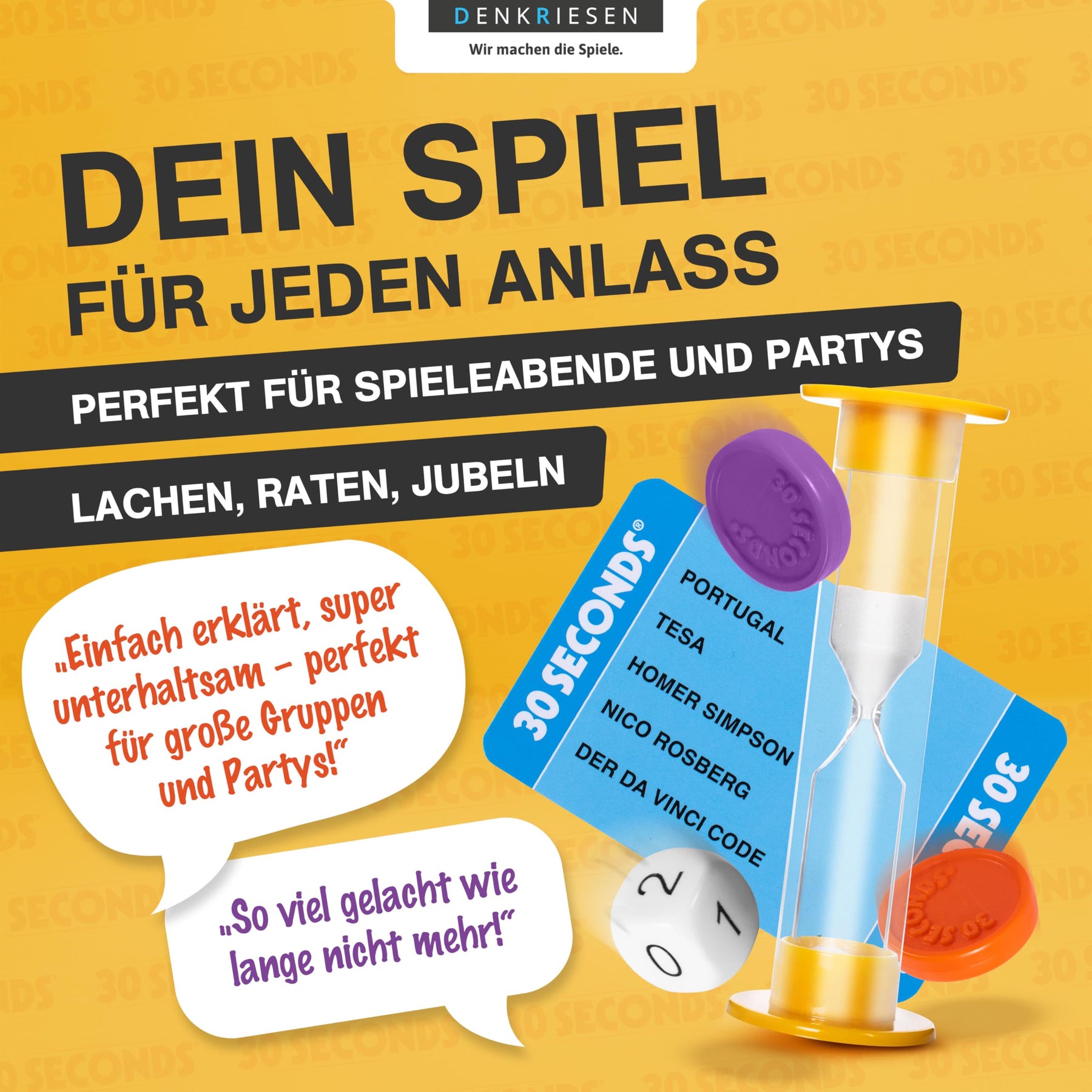 - 🎉 Das Kultspiel jetzt auf Deutsch – für bis zu 16 Personen – 30 Seconds ist eines der beliebtesten Gesellschaftsspiele für Erwachsene und Familien. Für große Gruppen und Spieleabende ab 12 Jahren.