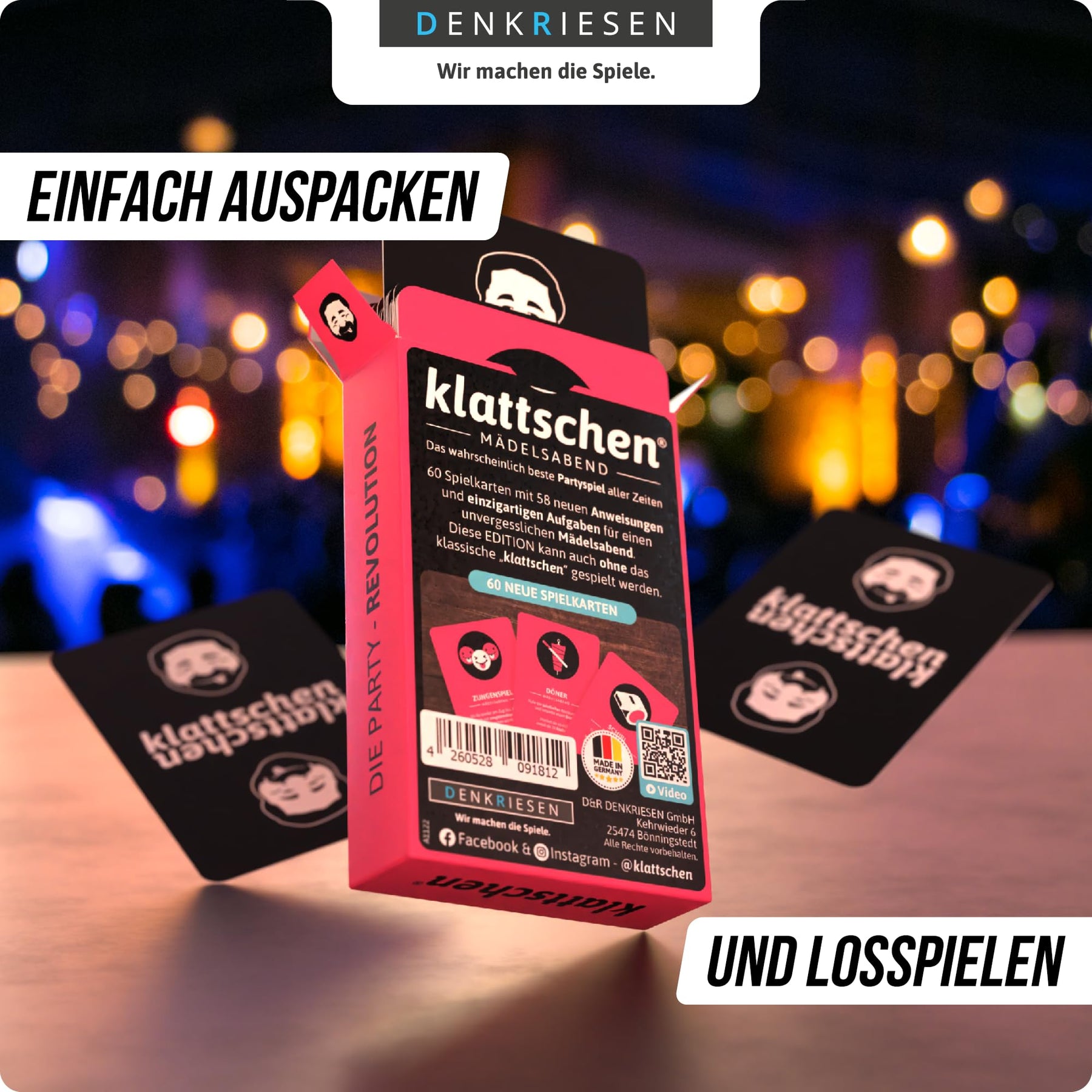 - 🎉 KLATTSCHEN – DAS ULTIMATIVE PARTYSPIEL – Kultiges Gesellschaftsspiel mit 60 Spielkarten für 2 bis 10 Spieler – der garantierte Stimmungsmacher für jede Runde.