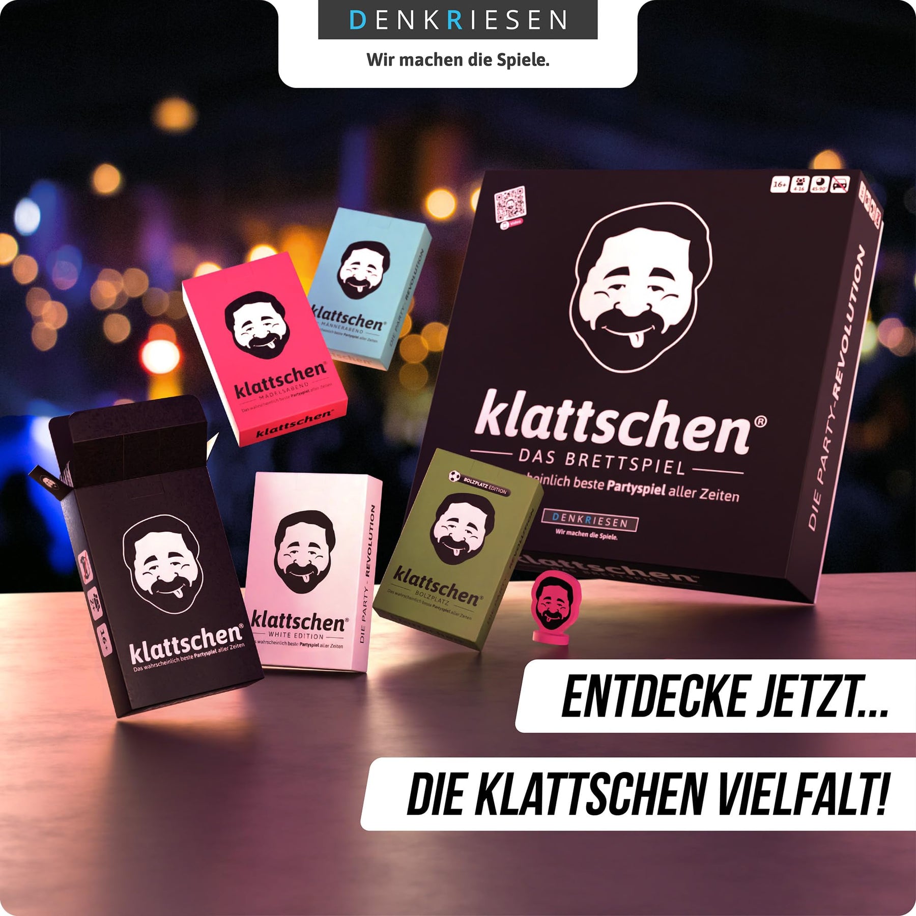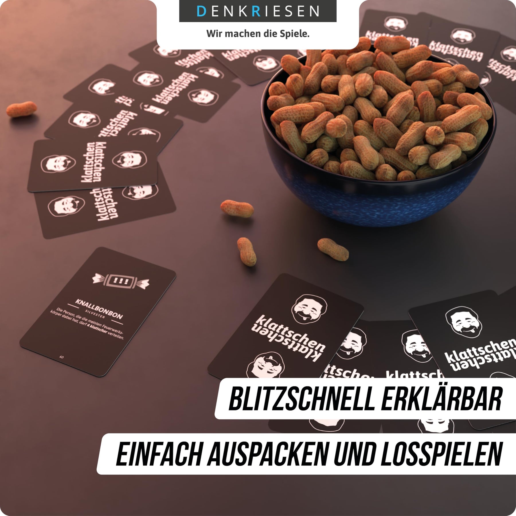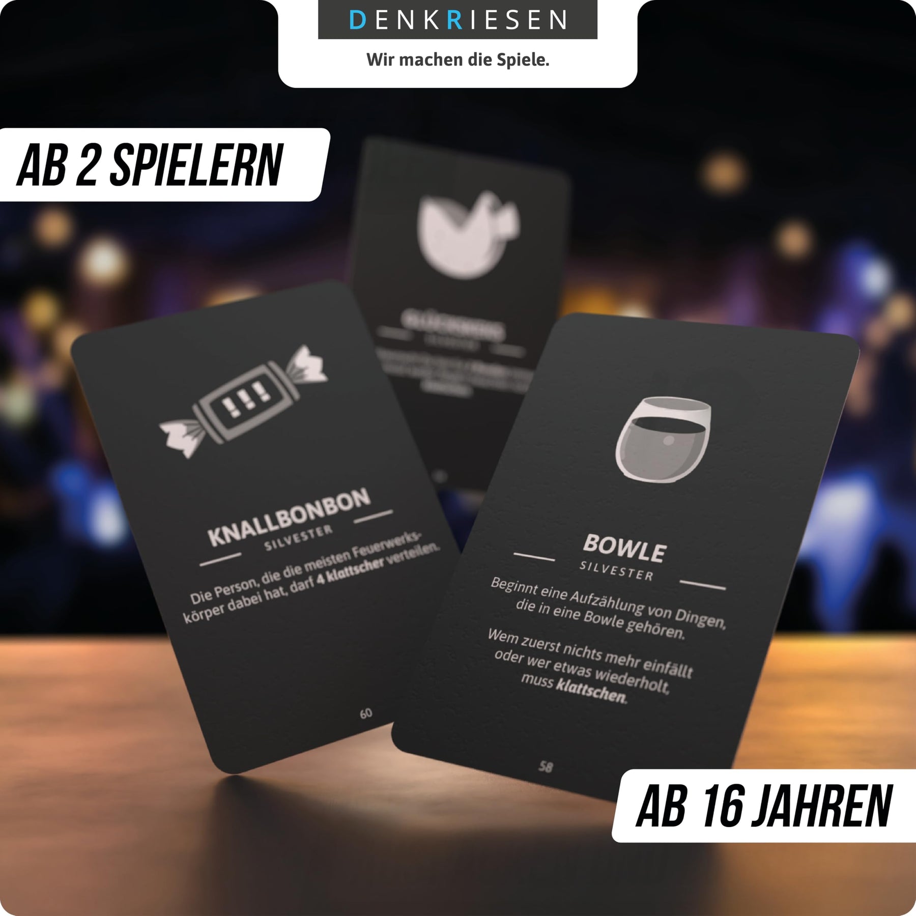 - 🎉 klattschen – Silvester Edition: Das Partyspiel von Denkriesen sorgt mit 40 kreativen Aufgaben und 60 einzigartigen Karten für ein unvergessliches Spielerlebnis an Silvester.
