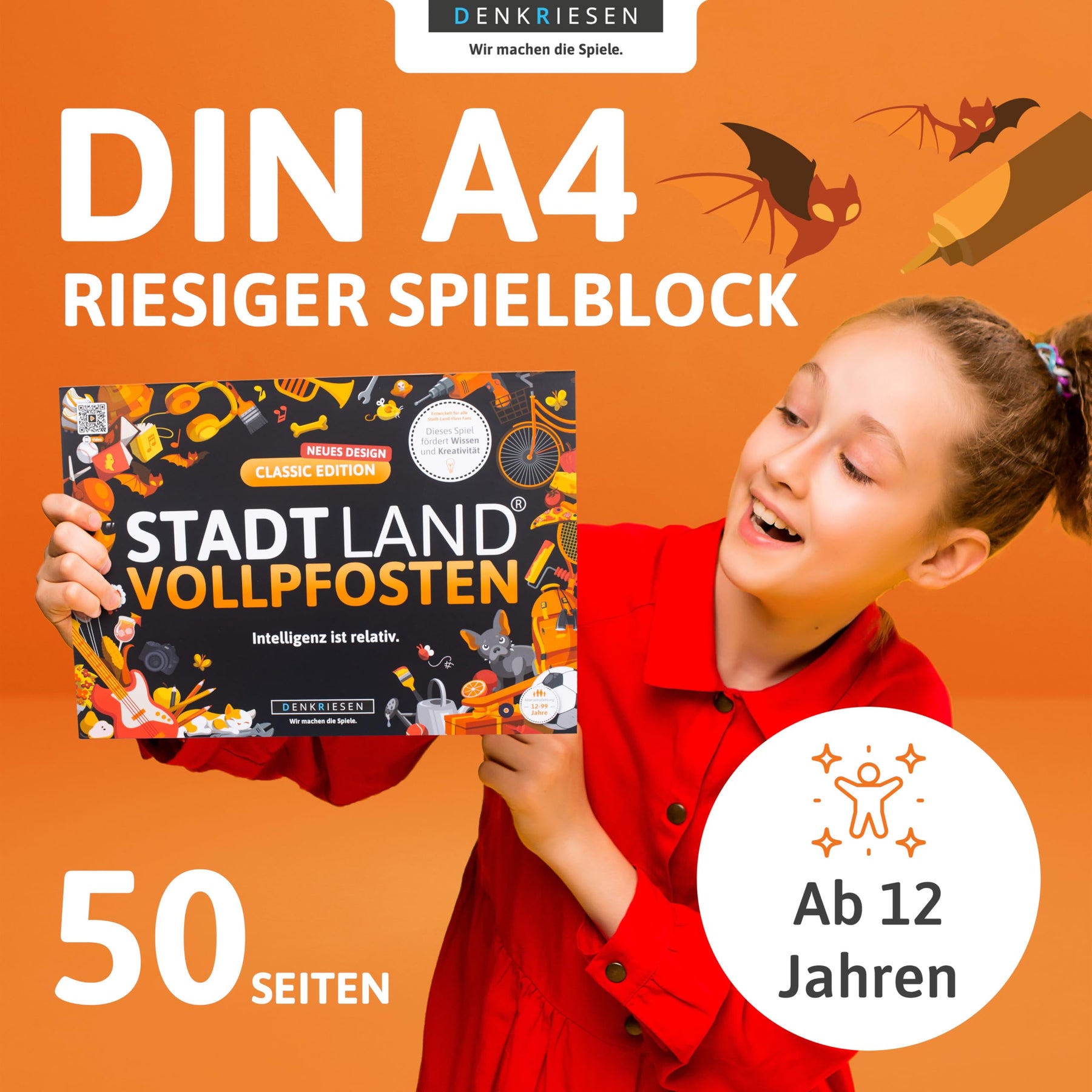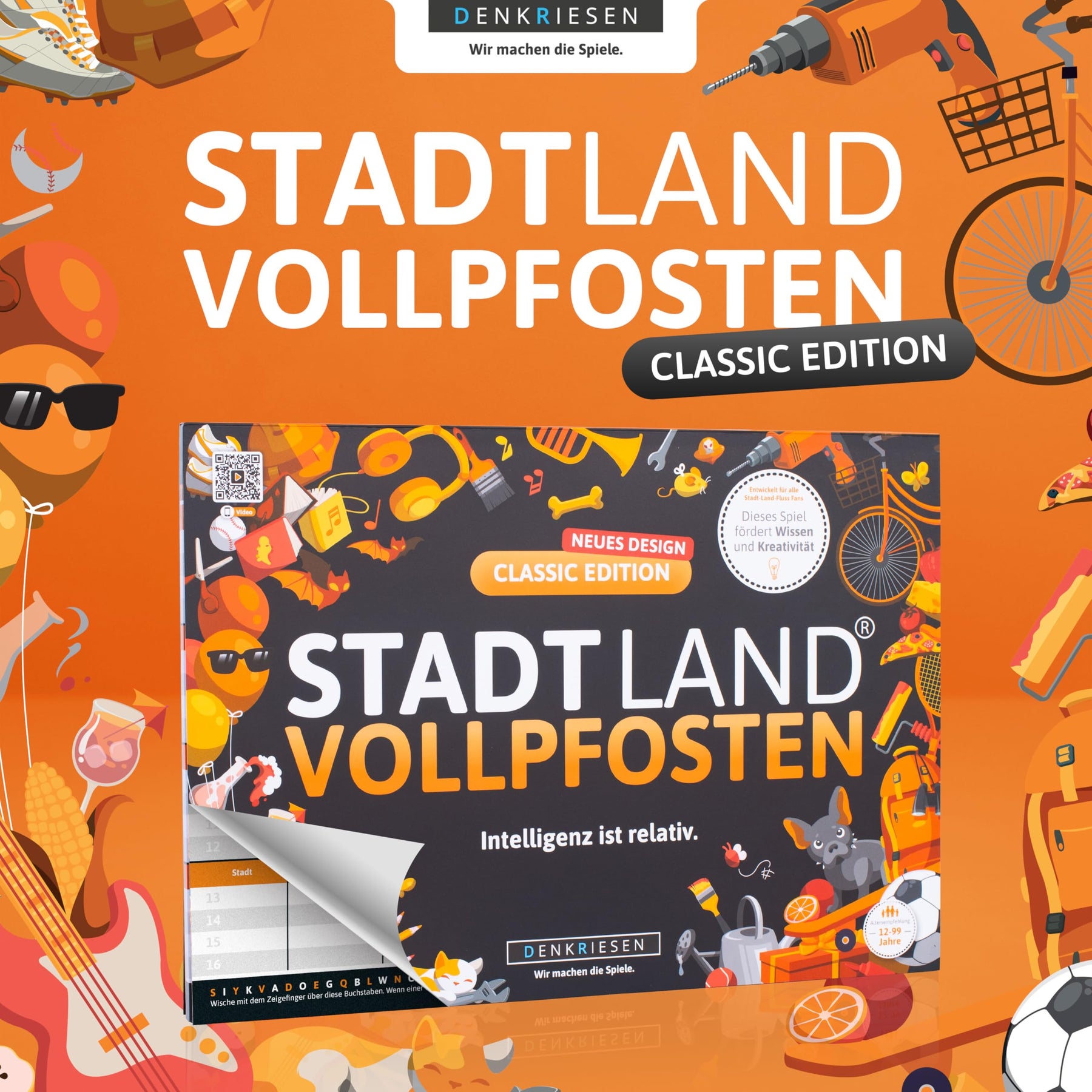 DENKRIESEN Stadt Land VOLLPFOSTEN® - Classic Edition | Wortspiel für 2-50 Spieler | Familienspiel ab 12 Jahren | Stadt Land Fluss | Gesellschaftsspiel & lustiges Partyspiel im DIN A4 Format