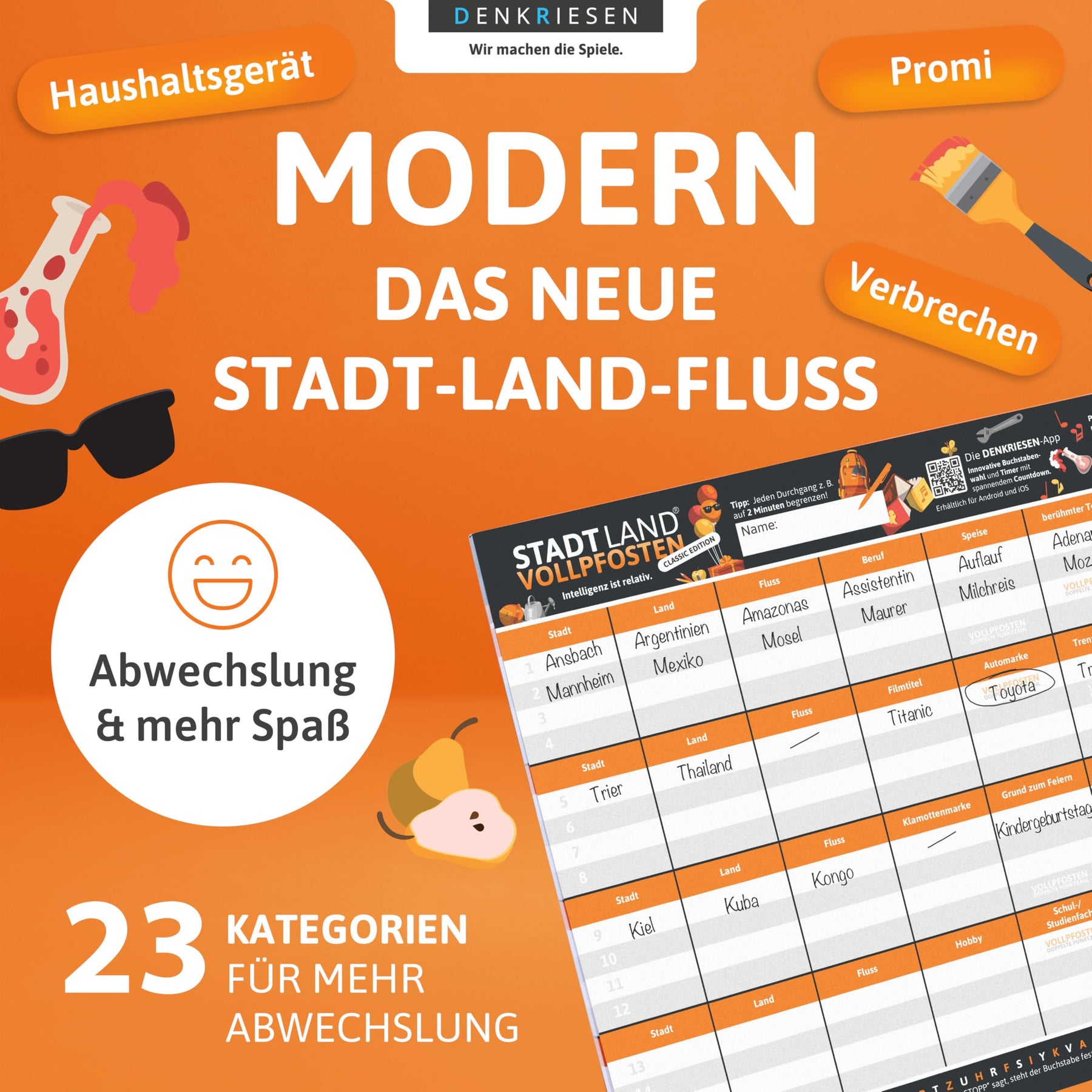 • 🎉 DAS MODERNE STADT-LAND-FLUSS – Die Classic Edition bringt den Spieleklassiker in einem innovativen Design mit 23 abwechslungsreichen Kategorien für noch mehr Spielspaß!