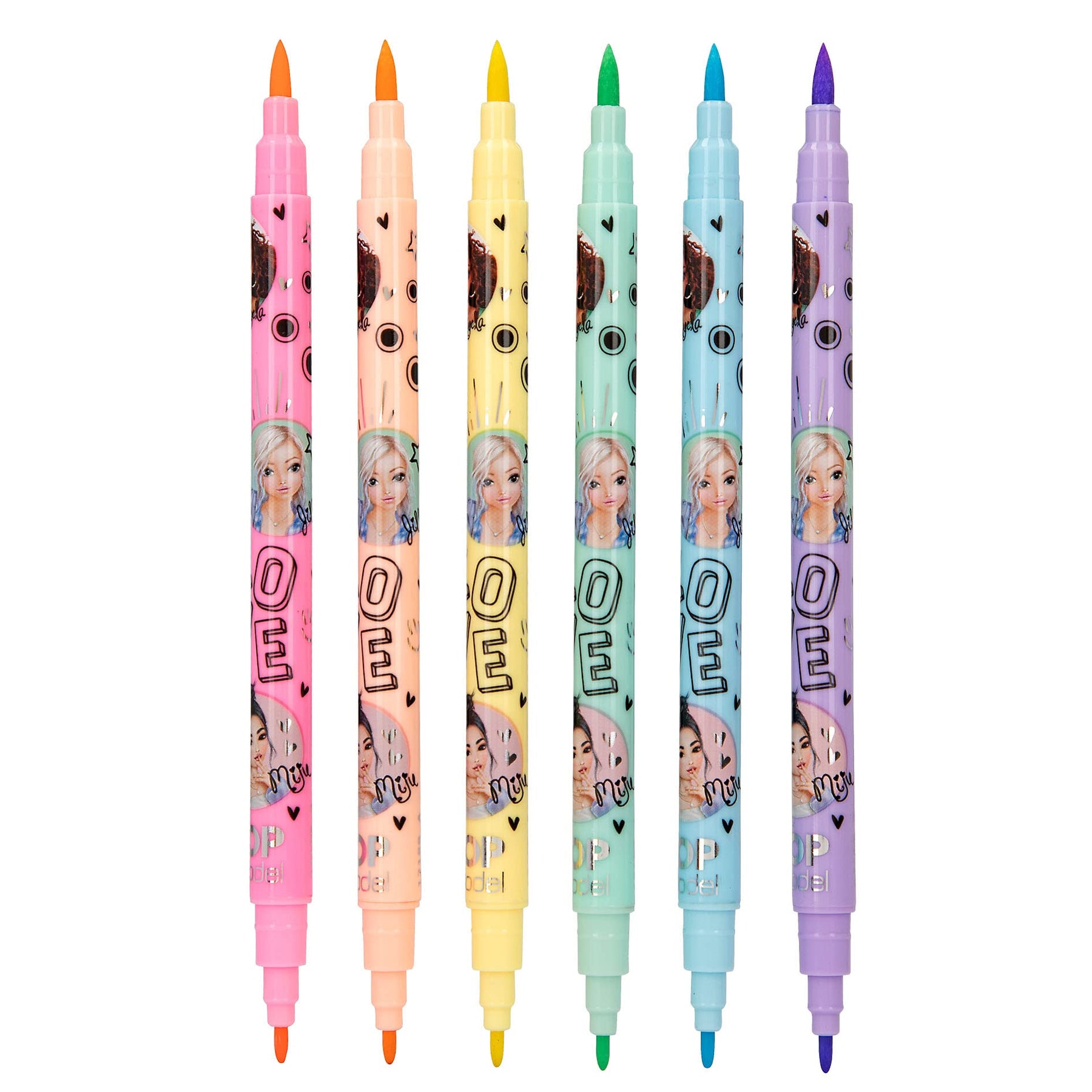 Mit den Fasermalern im TOPModel Design können kleine Künstler kunterbunte Kunstwerke zaubern und dabei ihrer Fantasie freien Lauf lassen. Jeder Stift hat zwei Spitzen, eine Pinselspitze für große Flächen und eine Fineliner Spitze für dünne Linien. Das Kunststoffetui enthält 6 Fasermaler in pastelligen Farben. Die Stifte eignen sich besonders gut für Hand Lettering Projekte oder als Ergänzung zu den TOPModel Malbüchern.