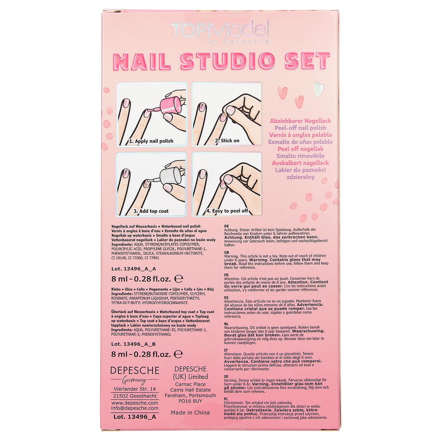 Das TOPModel Nagelstudio Set sorgt für schöne Nagel-Designs: Das Set enthält einen rosa Nagellack (auf Wasserbasis, 8 ml) sowie einen transparenten Überlack (auf Wasserbasis, 8 ml). Zusätzlich gibt es viele schöne Nagelsticker mit unterschiedlichen Motiven, um die Nägel noch schöner zu Verzieren. Verpackt ist das Set in eine passenden Box und eignet sich so auch kleine Geschenkidee. Maße: ca. 16 x 9 x 3 cm. Glutenfrei und dermatologisch getestet.