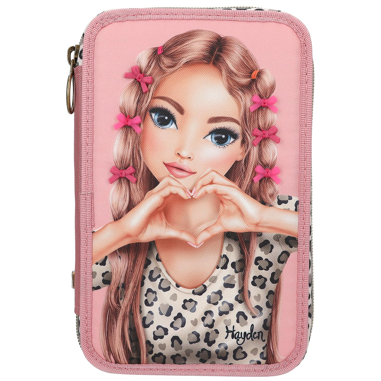 Die schöne Federtasche im TOPModel Design ist bereits gefüllt und bietet genug Platz für alle Stifte, Zeichenutensilien und was Ihr Kind sonst noch in der Schule benötigt. Enthalten sind je 18 Bunt- und Filzstiften, 2 Bleistifte, Anspitzer, Radierer, Lineal, Schere, Klebestift und ein kleines Klett-Täschchen. Cooles Extra ist der Reißverschluss-Anhänger als große Schleife. Das Mäppchen ist in hellem Rosa und mit einem Model Motiv gestaltet und hat eine Größe von ca. 20 x 13 x 7,5 cm.
