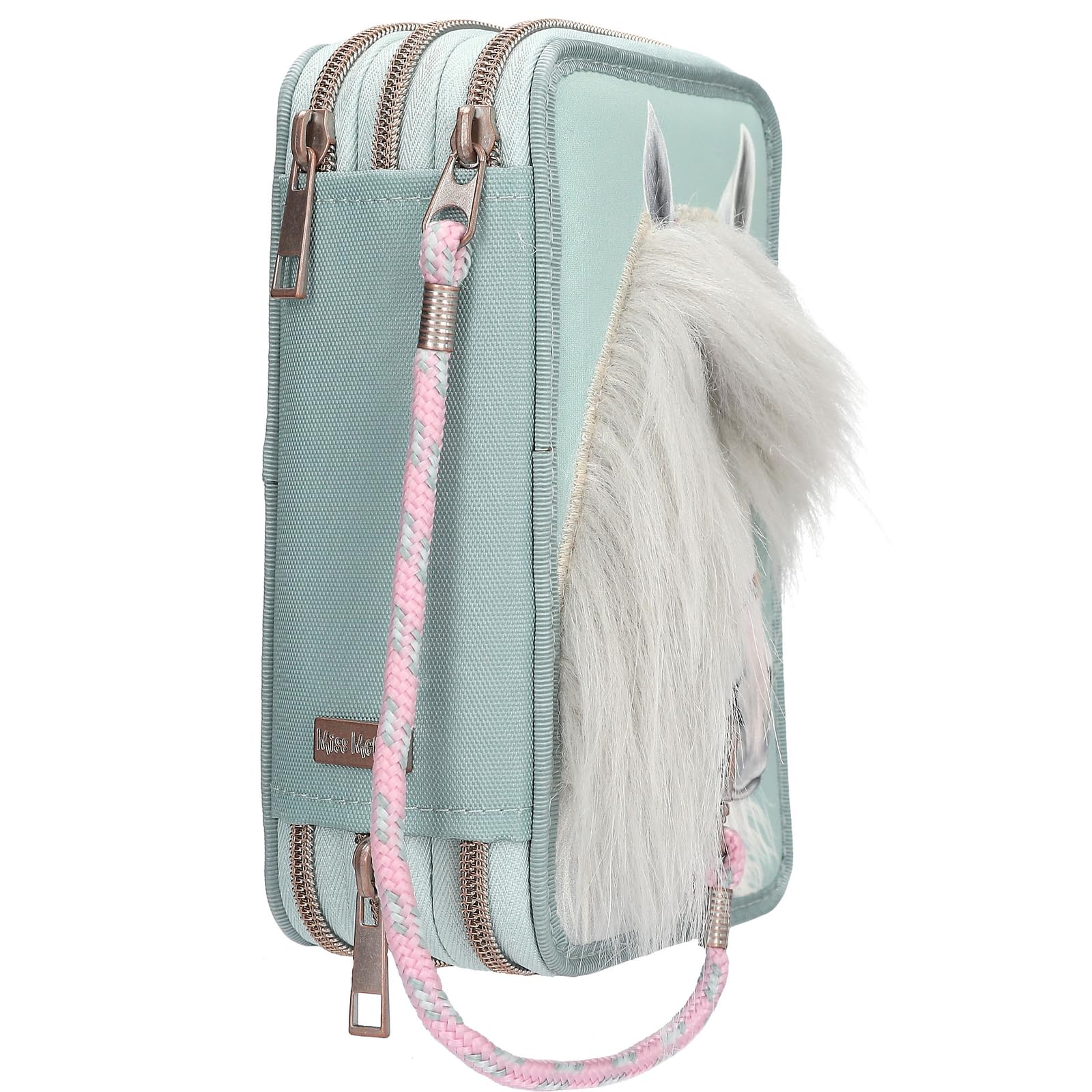 Die schöne Federtasche im TOPModel Design ist bereits gefüllt und bietet genug Platz für alle Stifte, Zeichenutensilien und was Ihr Kind sonst noch in der Schule benötigt. Enthalten sind je 18 Bunt- und Filzstifte, 2 Bleistifte, Anspitzer, Radierer, Lineal, Schere, Klebestift und ein kleines Klett-Täschchen. Cooles Extra ist der Reißverschluss-Anhänger als große Schleife. Das Mäppchen ist in hellem Rosa und mit einem Model Motiv gestaltet und hat eine Größe von ca. 20 x 13 x 7,5 cm.