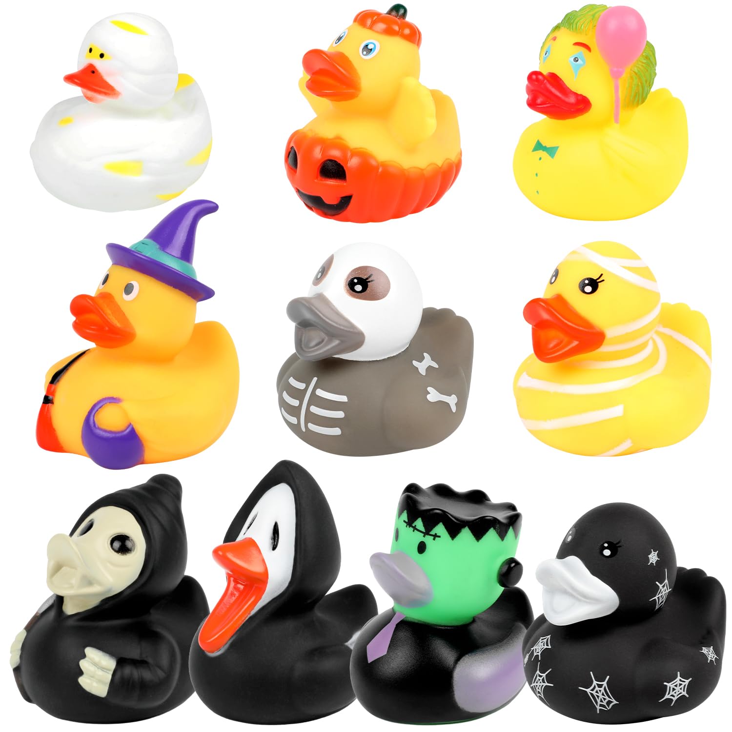 DERAYEE Badespielzeug Baby,Gummiente,Gummi Badeenten,Gummi Enten,Float und Squeak Mini Enten Badewanne Spielzeug für Kinder Dusche,Geburtstag(Halloween Gummiente, 10PC)