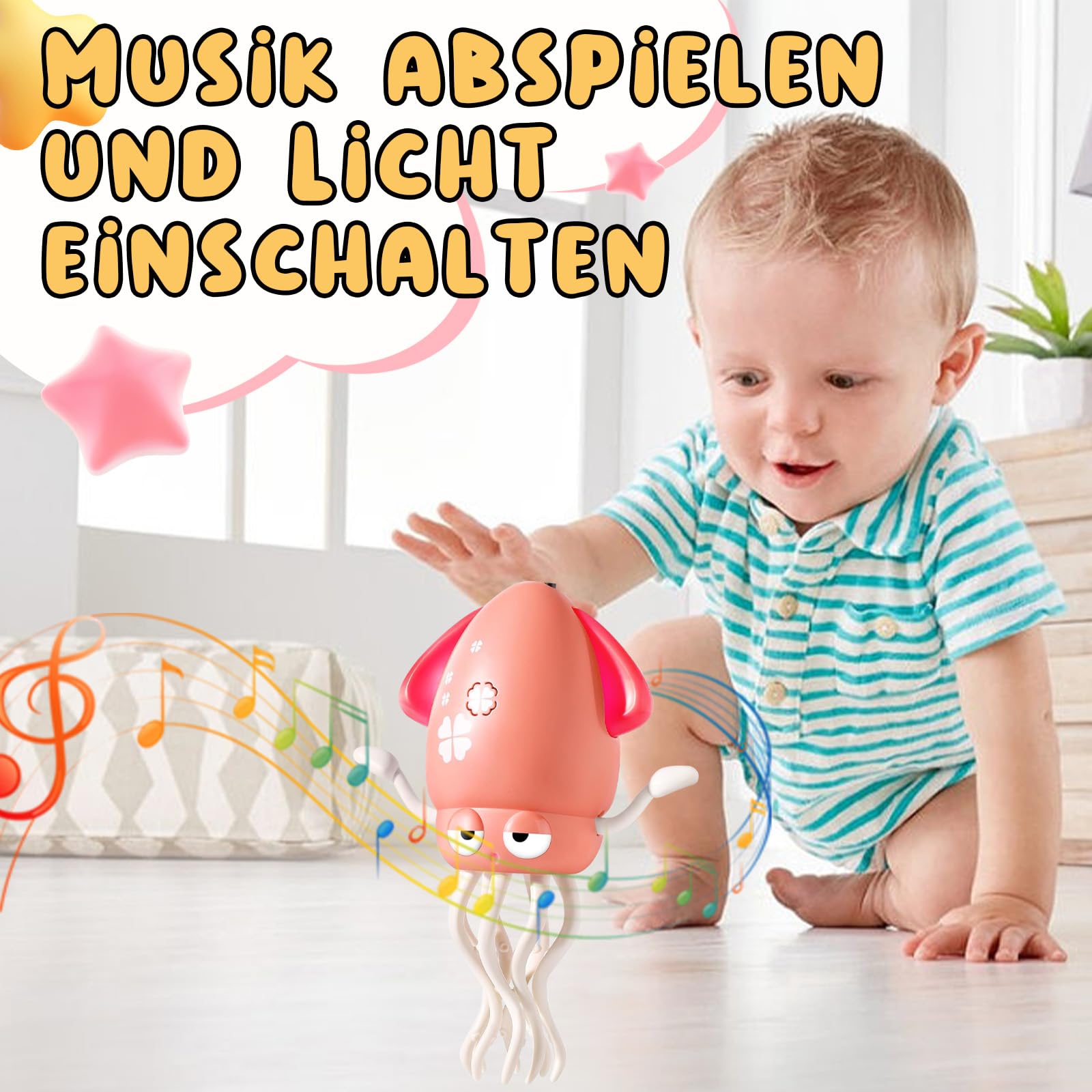 • 【Magisches, tanzendes Oktopus-Spielzeug für Babys】Dieser tanzende Oktopus wackelt, dreht und krabbelt mit bunten Lichtern und einstellbarer Musik. Er animiert Babys zum Laufen und Krabbeln. Das elektrische Krabbelspielzeug eignet sich perfekt für aktives Spielen und die frühe sensorische Entwicklung. Es ist eine tolle Wahl für Babys von 6–12 Monaten, Lauflernhilfen und Spielzeug für 1-jährige Jungen und Mädchen.